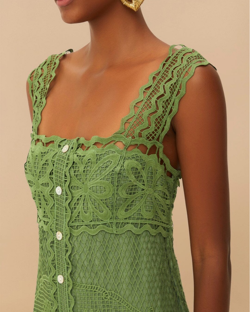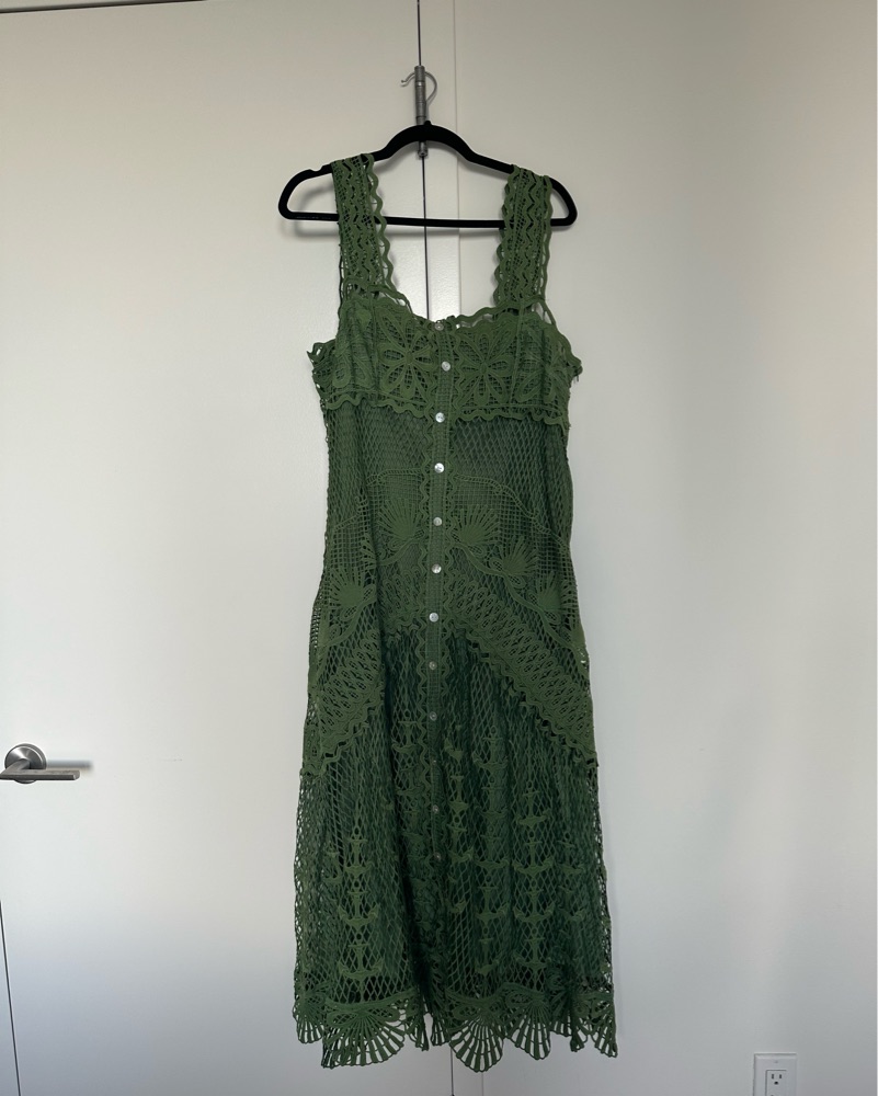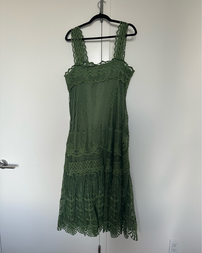 Farm Rio Crochet Lace Midi Dress by Farm Rio - Pickle