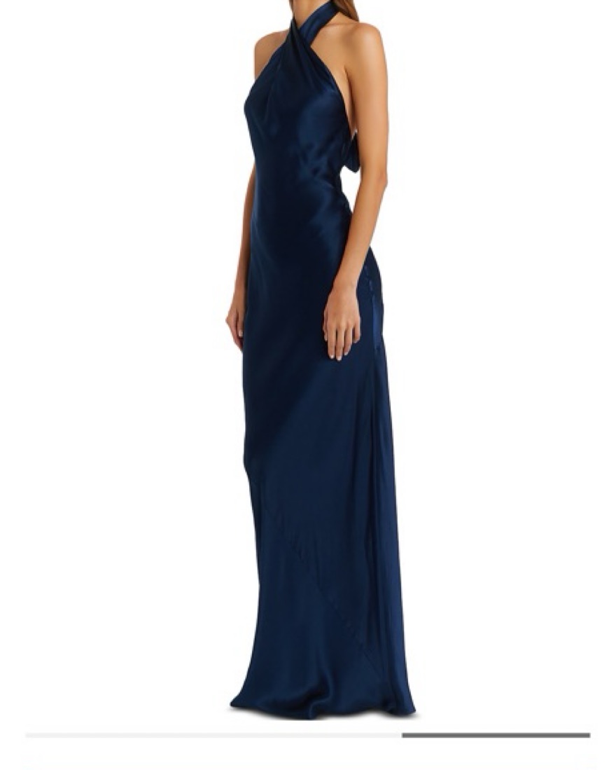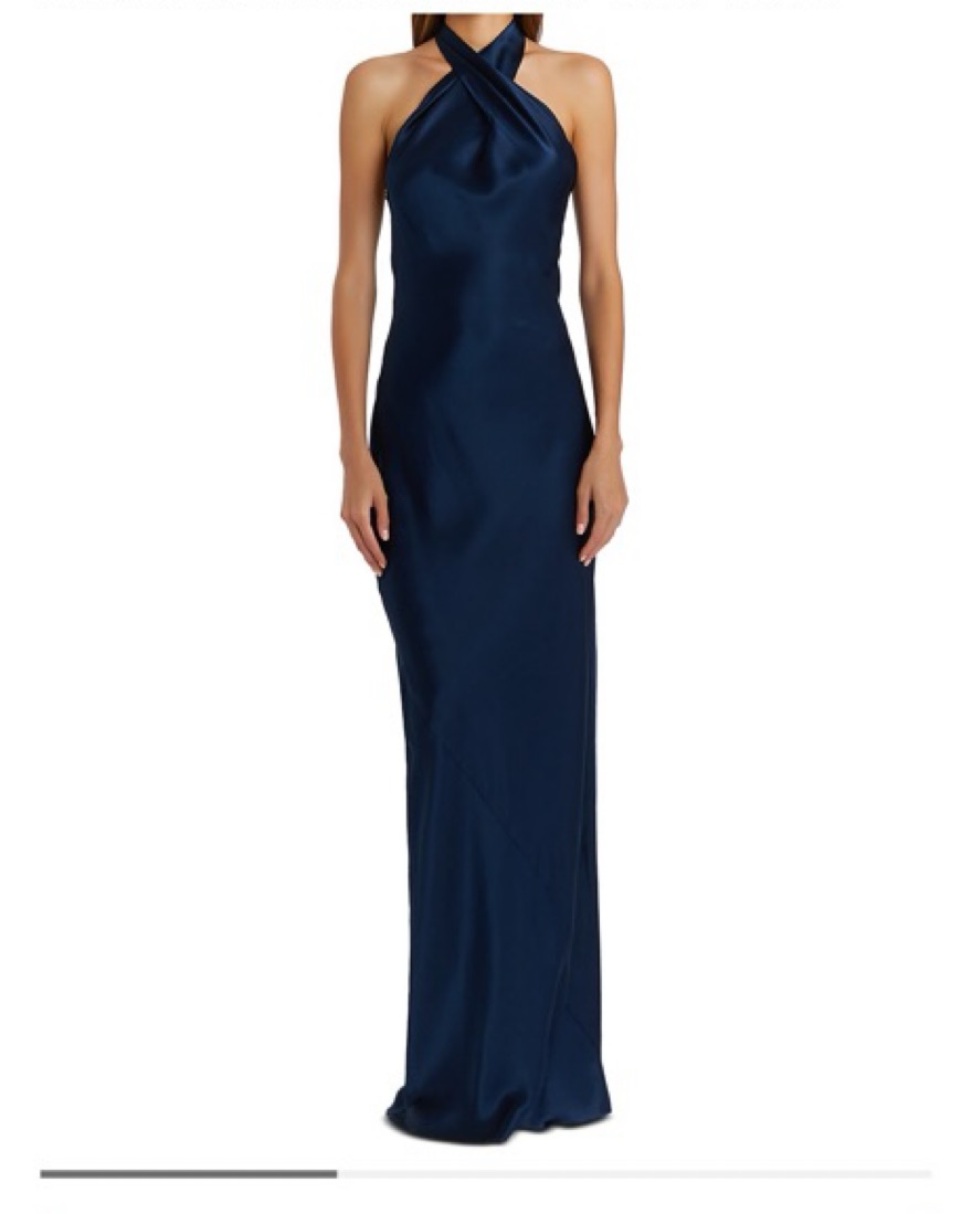 Amanda Uprichard Navy Silk Crossover Halter Gown - perfect classic formal / black tie dress! Size M but flexible sizing. I typically wear a size small