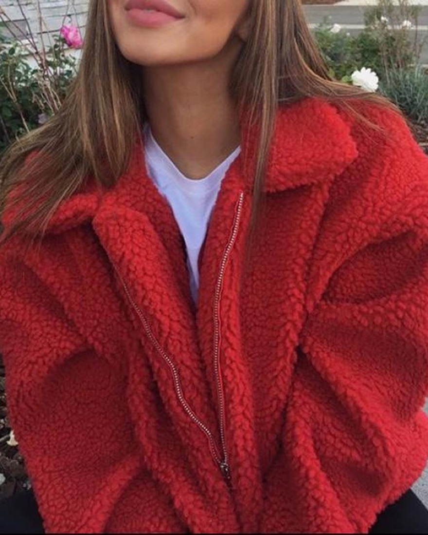 I AM GIA Red Teddy Coat