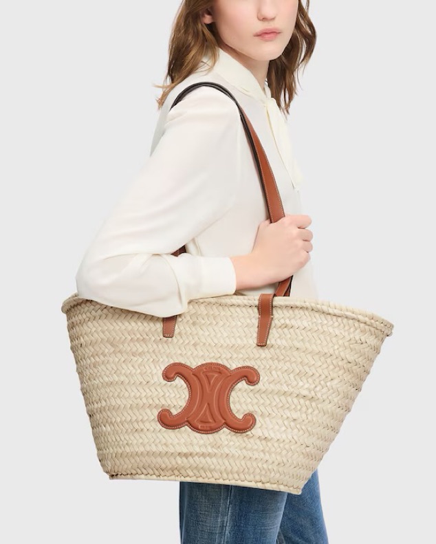 MEDIUM CELINE CLASSIC PANIER IN PALM LEAVES AND CALFSKIN