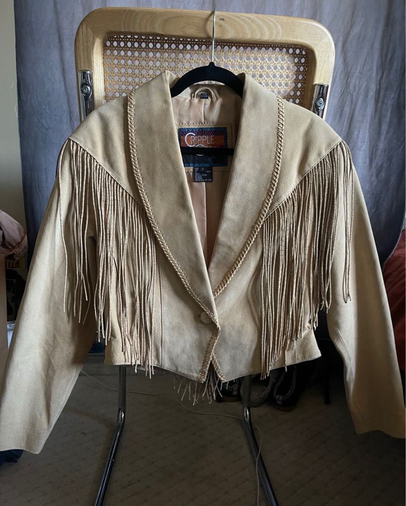 Vintage Cropped Beige Leather Jacket by Vintage - Pickle