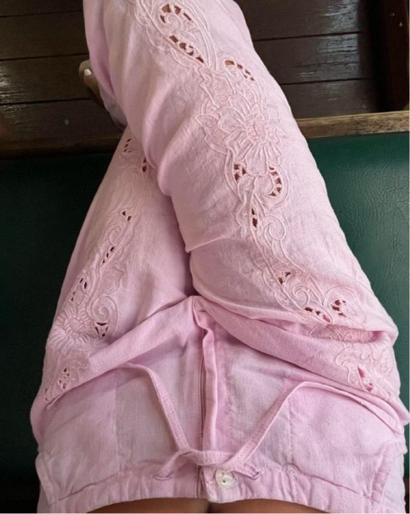 gimaguas pink embroidered linen pants