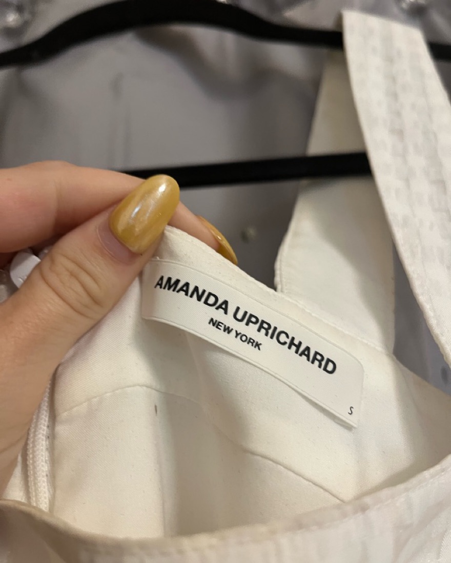 Perfect bridal event dress. Amanda Uprichard White Annalise Sundress, size small. Has some really minor foundation stains on the inside seams (cant be seen from the outside) and a miniscule yellow dot on the front