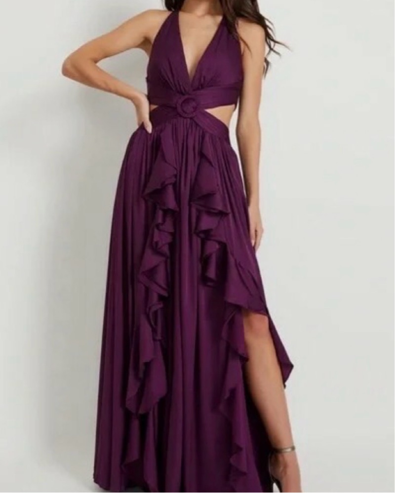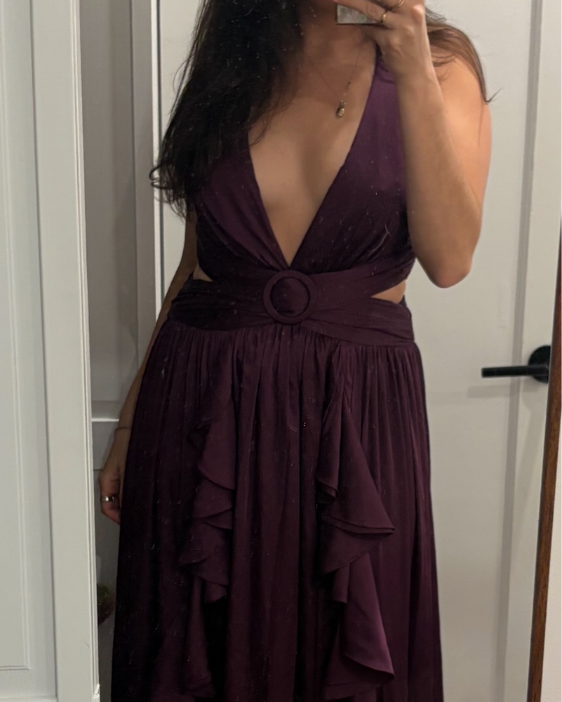 New with tags!! Rare PatBo gown in a gorgeous deep purple. Tie up back and plunging neckline. Size 6 (but I think runs a smidge small). Price includes dry cleaning. Note: I work in Chelsea so can also coordinate in person handoffs in Manhattan.