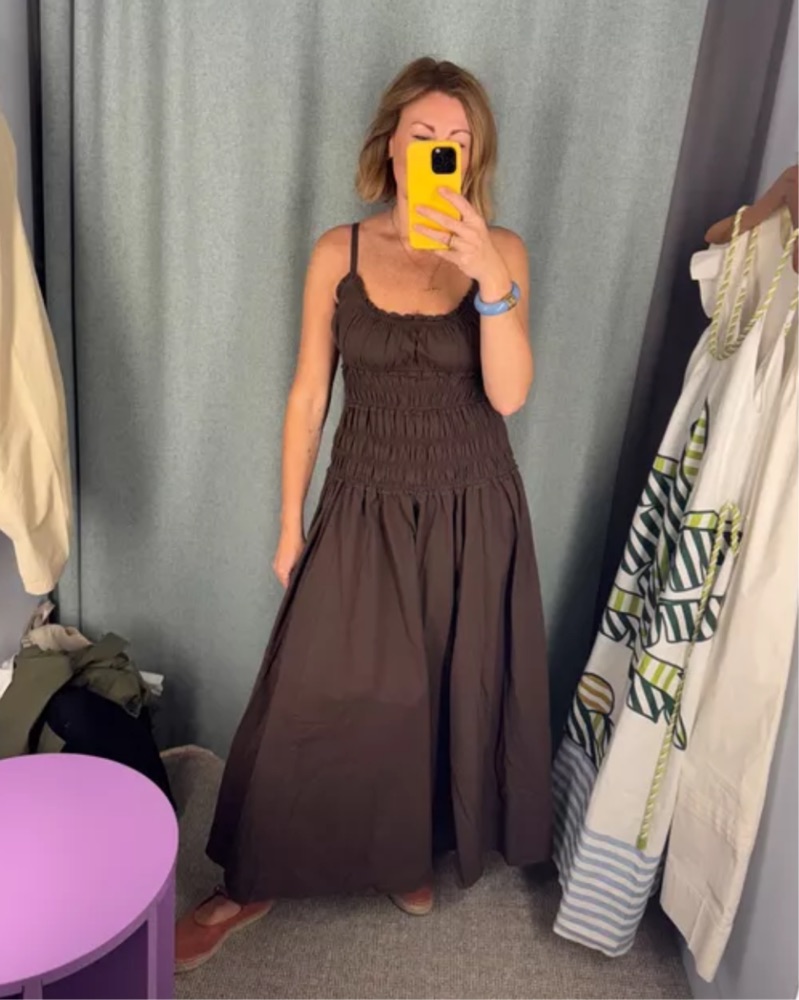TOBY BITTER CHOC COTTON MIDI DRESS Cotton, Slit at side