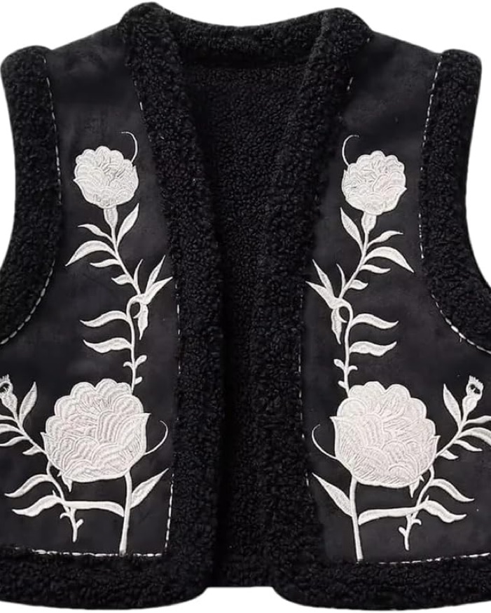 Suede Sherpa Embroidered Vest