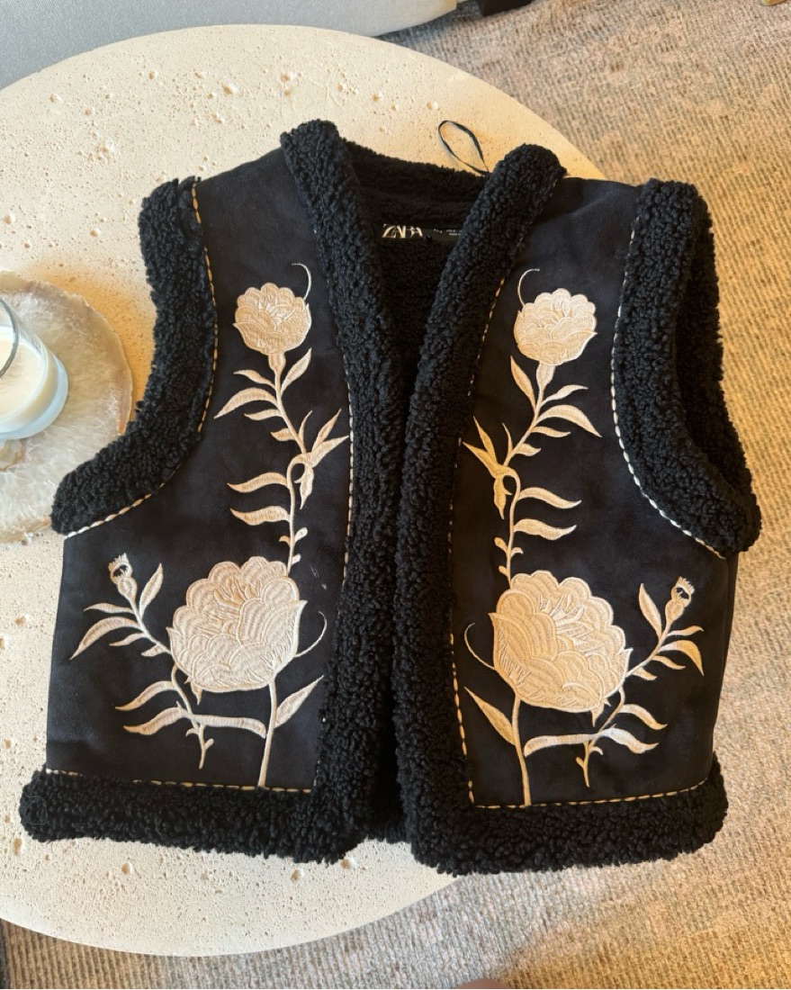 Suede Sherpa Embroidered Vest by Zara - Pickle