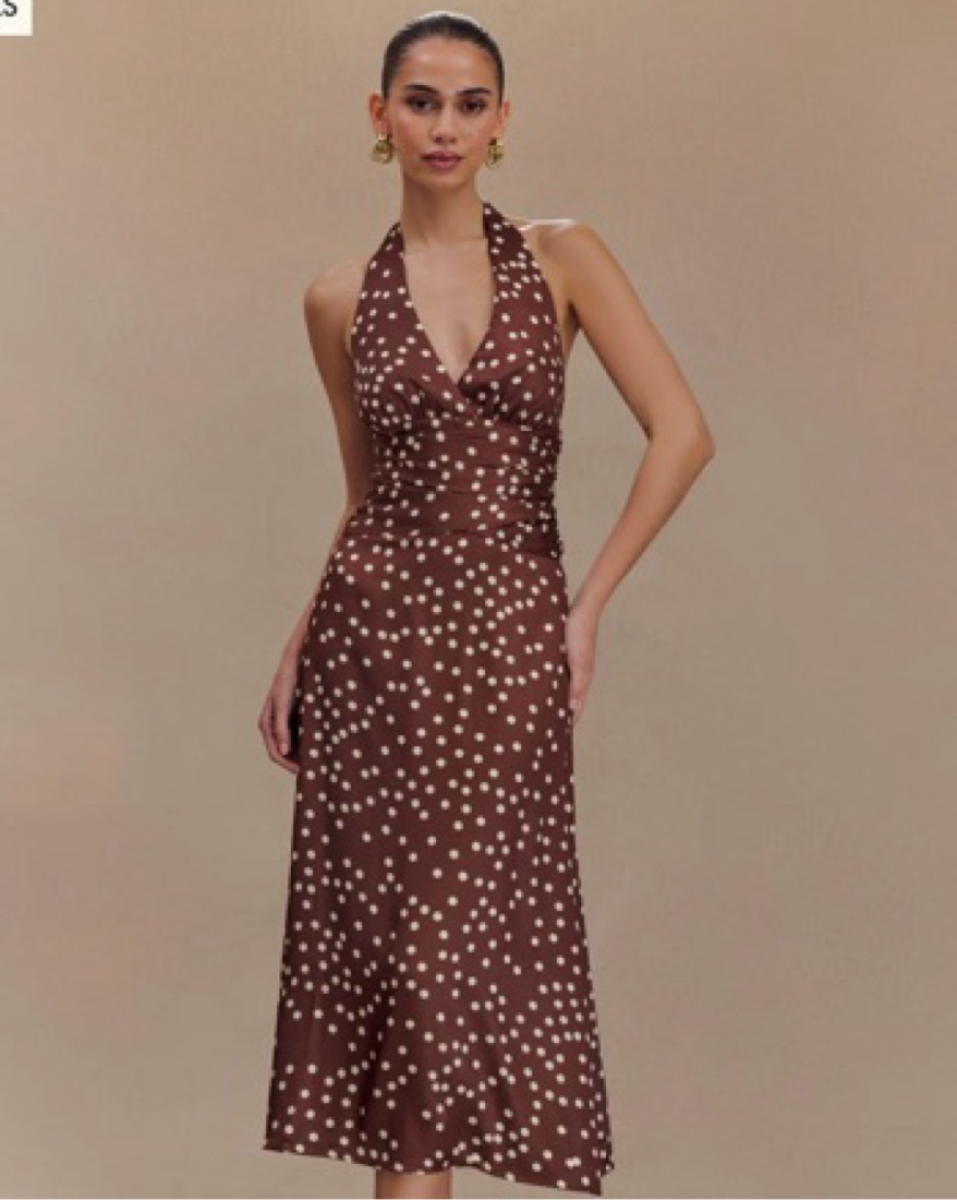 meshki Polka Dot Halter Midi Dress by Meshki - Pickle