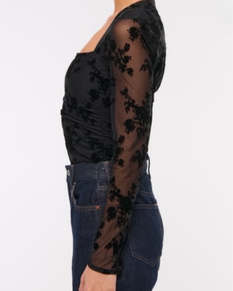 This enchanting black lace top exudes elegance and sophistication. Pair it with jeans for a night out or tuck it into a sleek midi skirt for a chic formal look.
