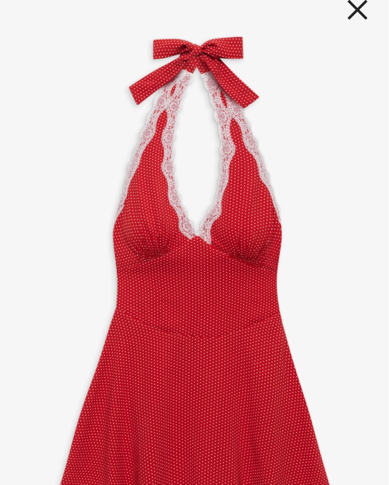 Red and white polka dot print