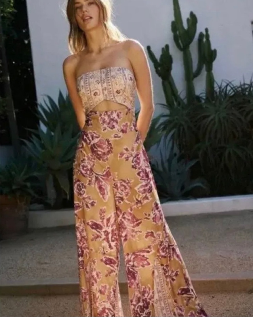 Nwt- Free People Strapless Cut Out Floral Jumpsuit