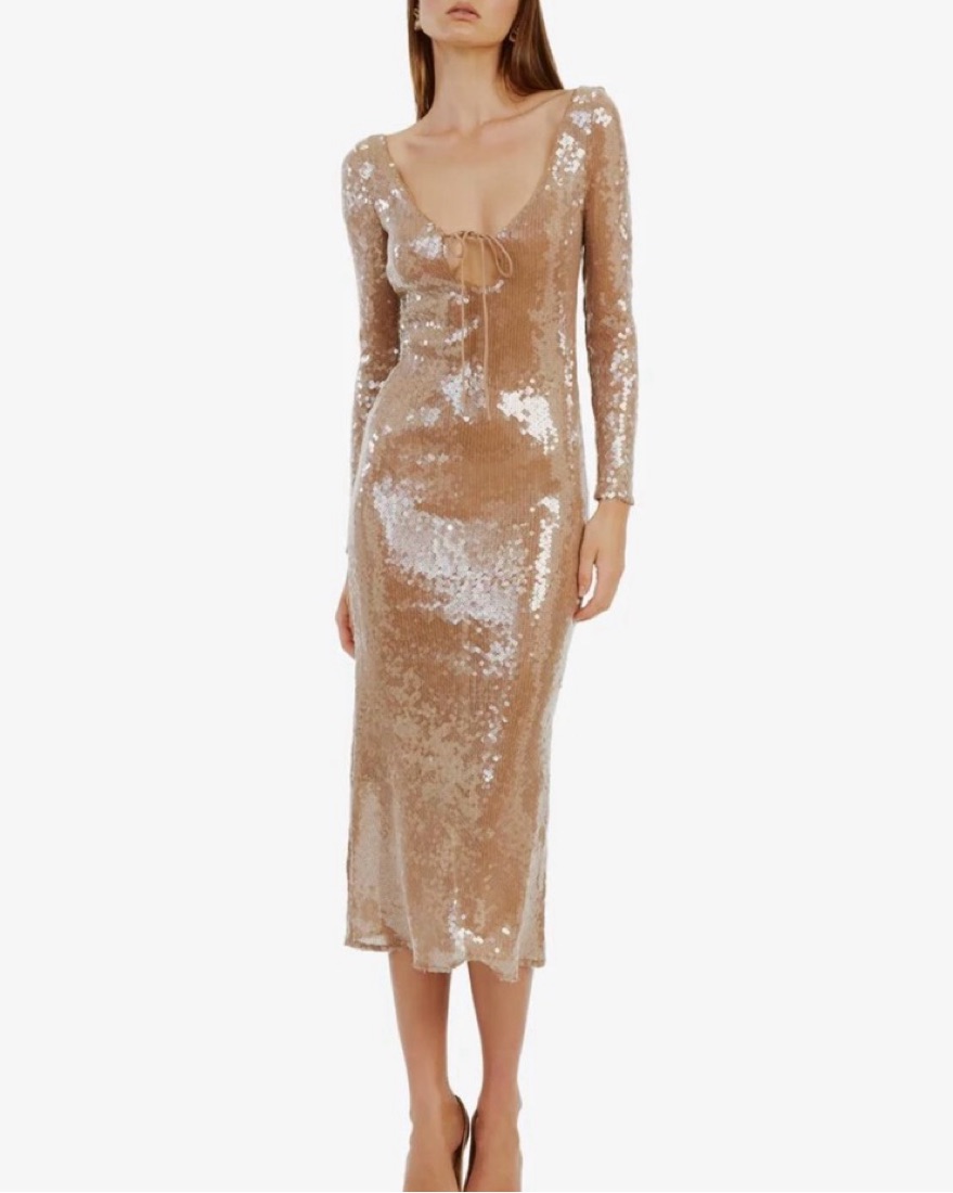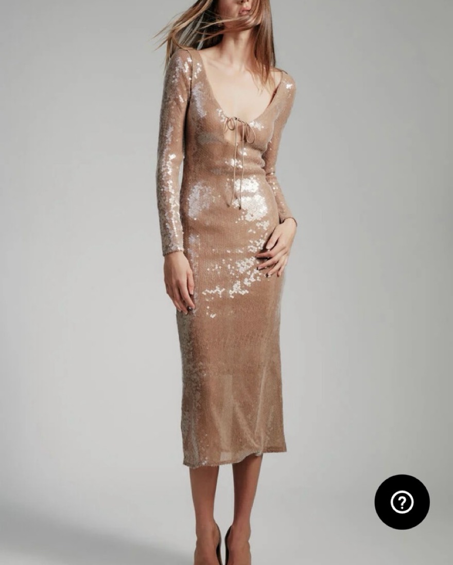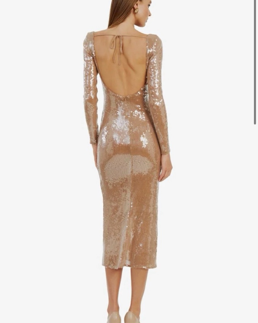 Party dress long sleeve sequins nude beige size 4 bardot, worn once