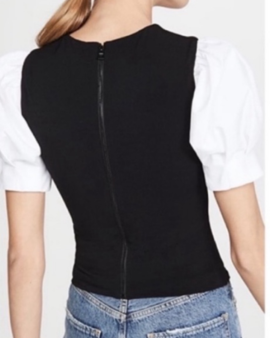 A versatile cropped black top with structured puff sleeves for a chic, feminine look. Perfect for dressing up or down. I pair with black mini skirt, shorts or jeans. Could be used for date night or even something more professional. As seen on Cami Mendes on Riverdale