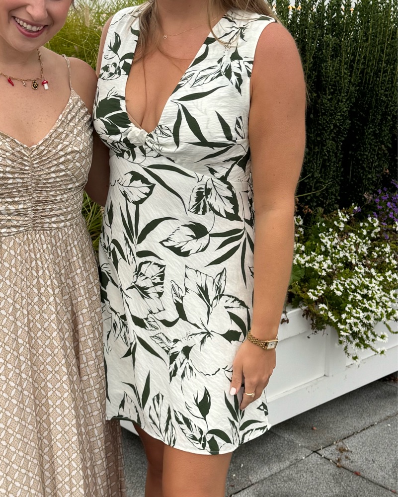 This Abercrombie dress features a striking floral print in a dark green and white color palette. It's perfect for a variety of occasions, from a summer garden party or a brunch out with friends. Medium-Tall