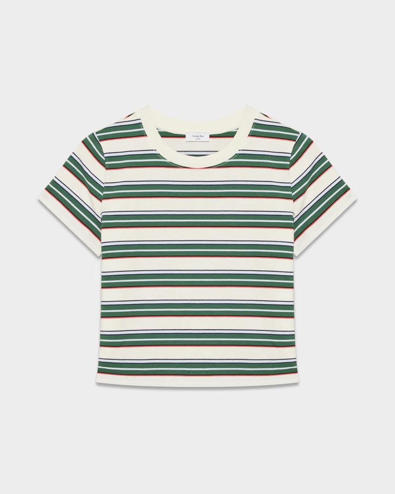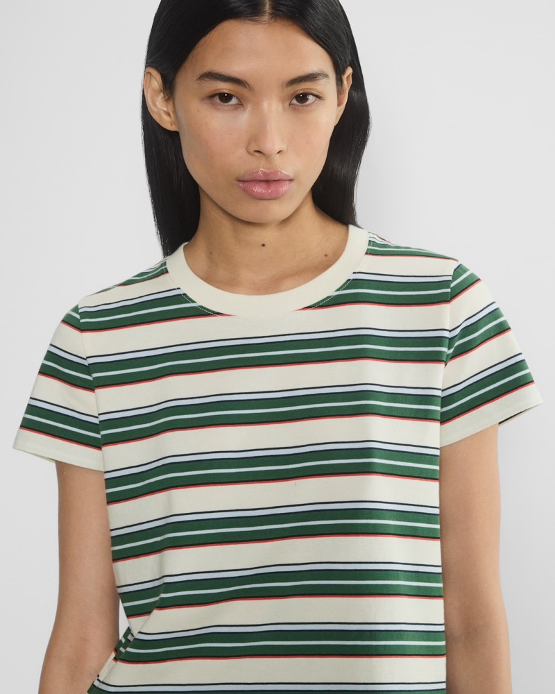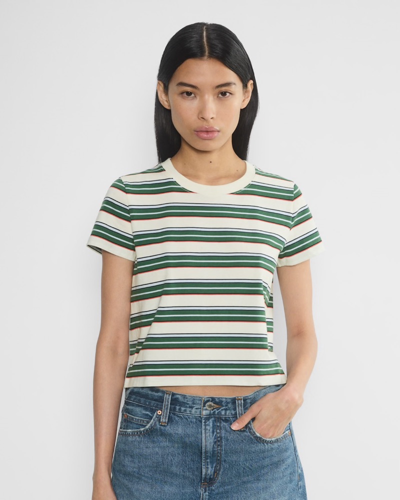 This versatile striped tee can be dressed up or down. Pair it with jeans and sneakers for a casual daytime look or tuck it into a skirt for an effortlessly chic vibe.