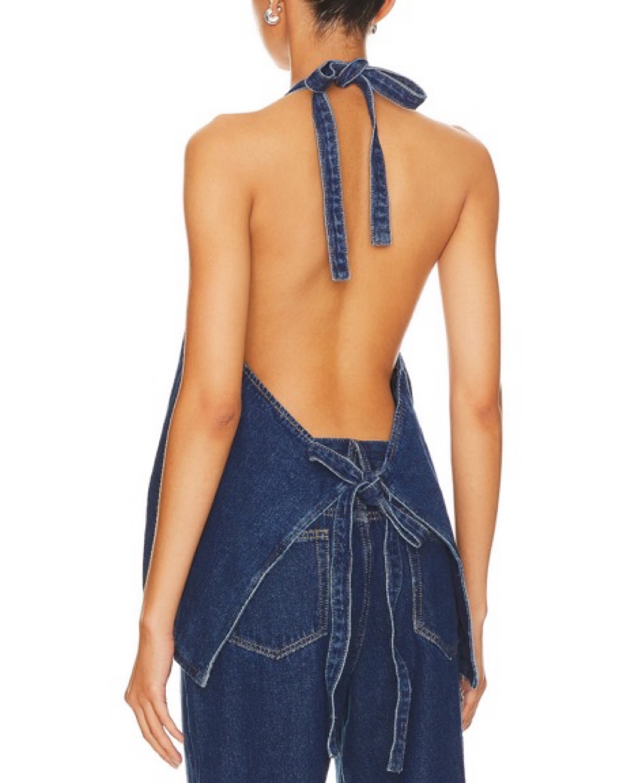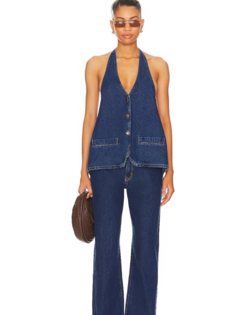 Hills Halter Top in Dark Denim & Top Model Jean in Dark Denim Set