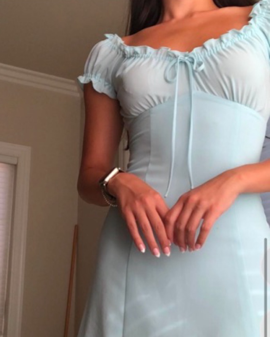 Size xxs. Aritzia off the shoulder baby blue dress
