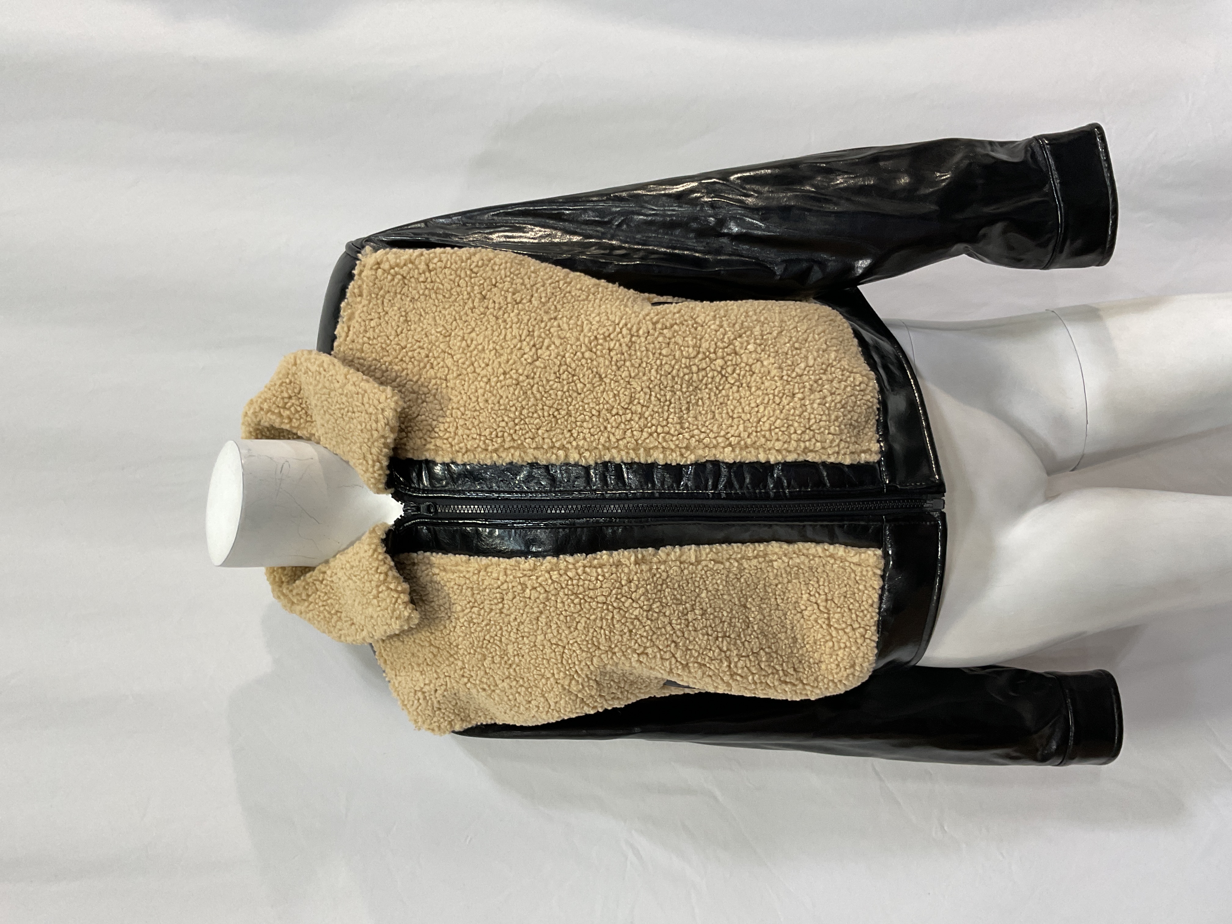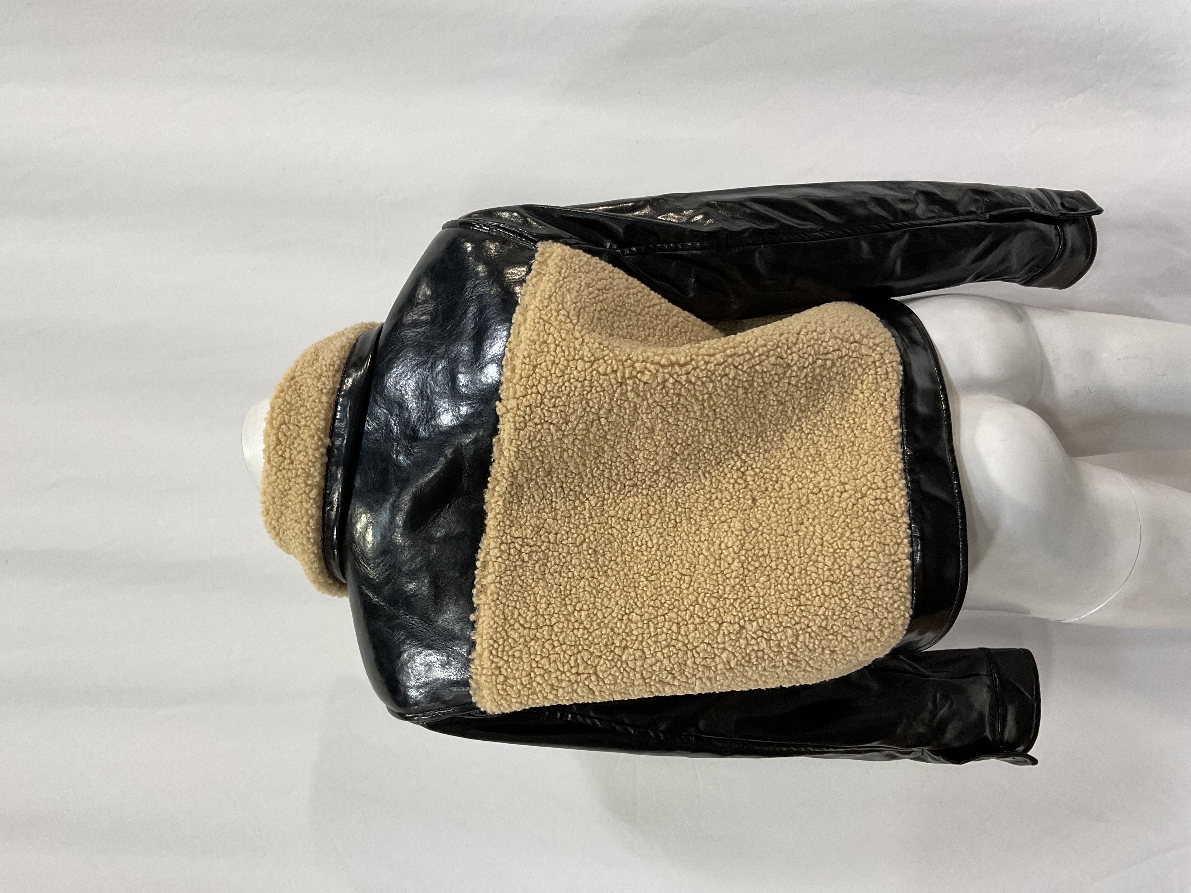 Cozy sherpa lining meets edgy faux leather in this cropped silhouette. Perfect for layering over sweaters or adding texture to casual looks.