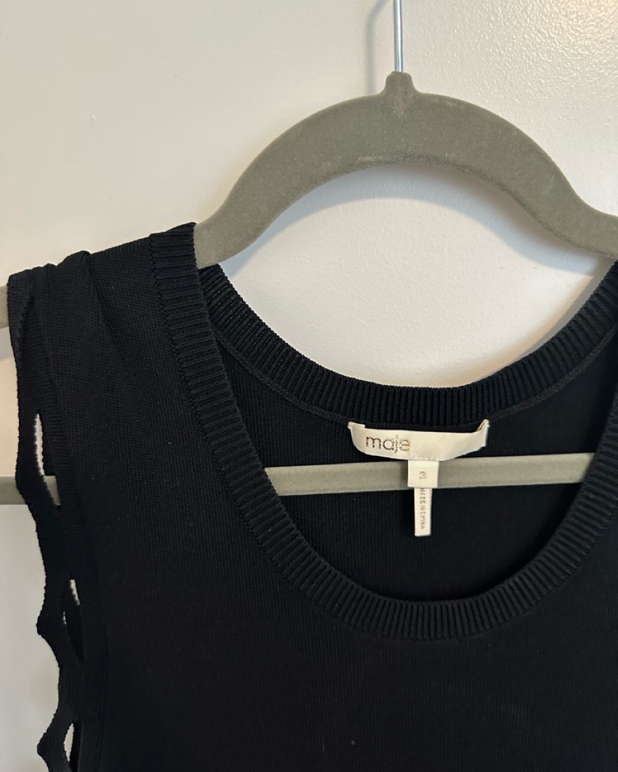 Maje Black sleeveless dress with cutout accents on sleeve and bottom SIZE 3