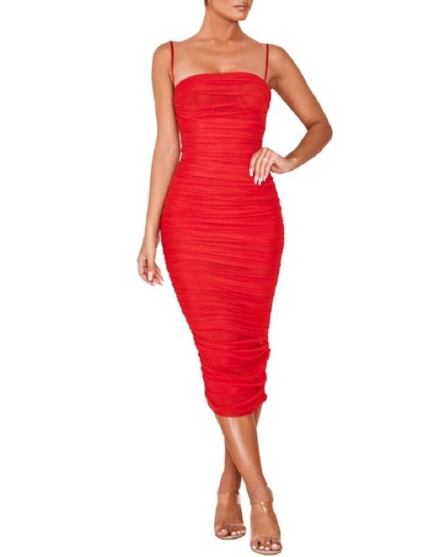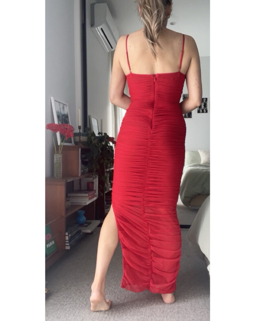 New. Perfect date night, holiday party / gala, or Valentine’s Day dress. Built in underwired bra. Hidden zipper in back. Slightly sheer with spaghetti straps. Priced for dry cleaning