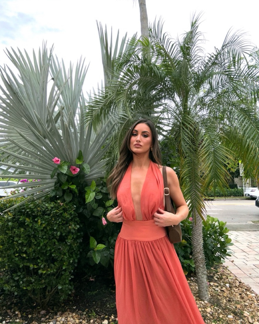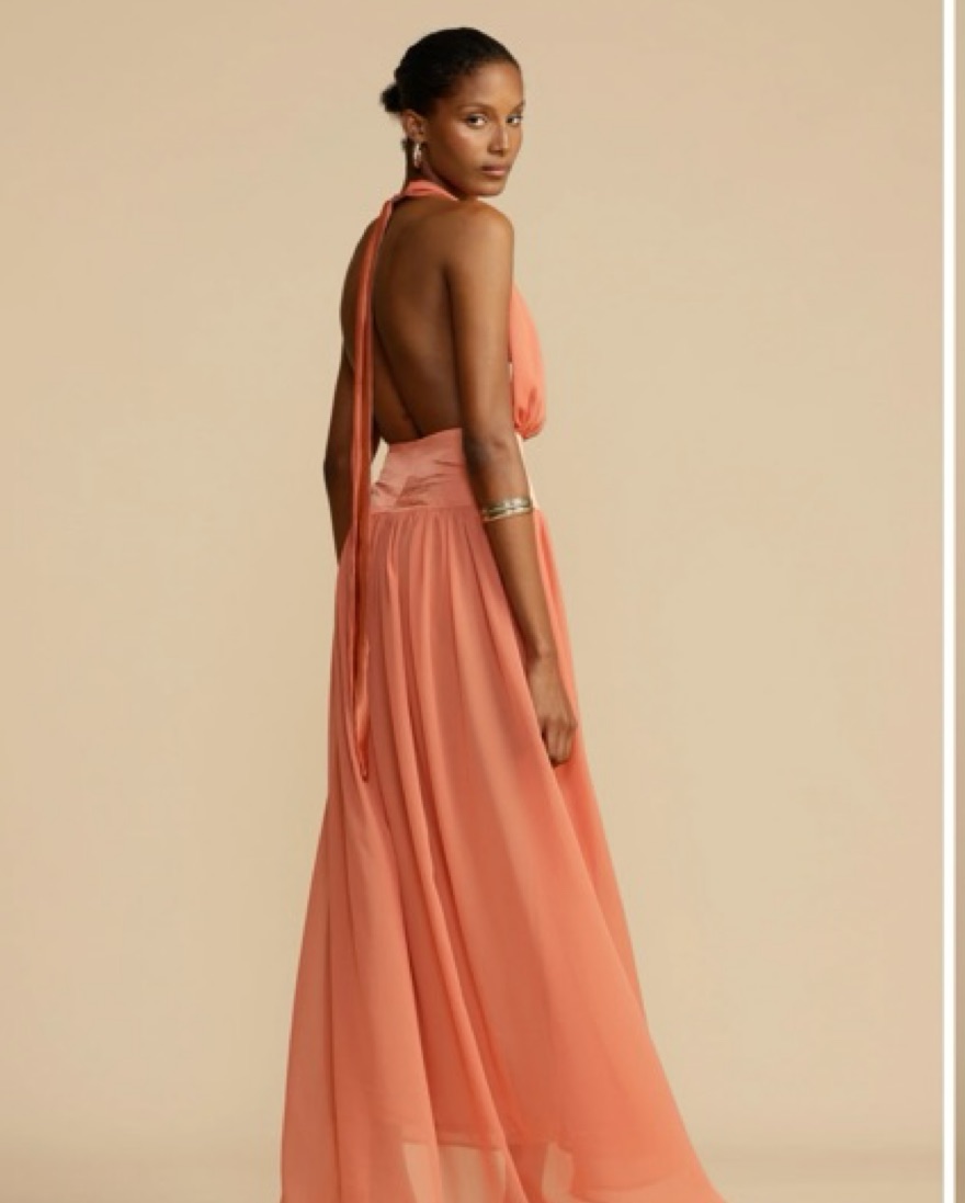 Earthy coral dress with drop-waistband. Lined. True to size. Worn once!