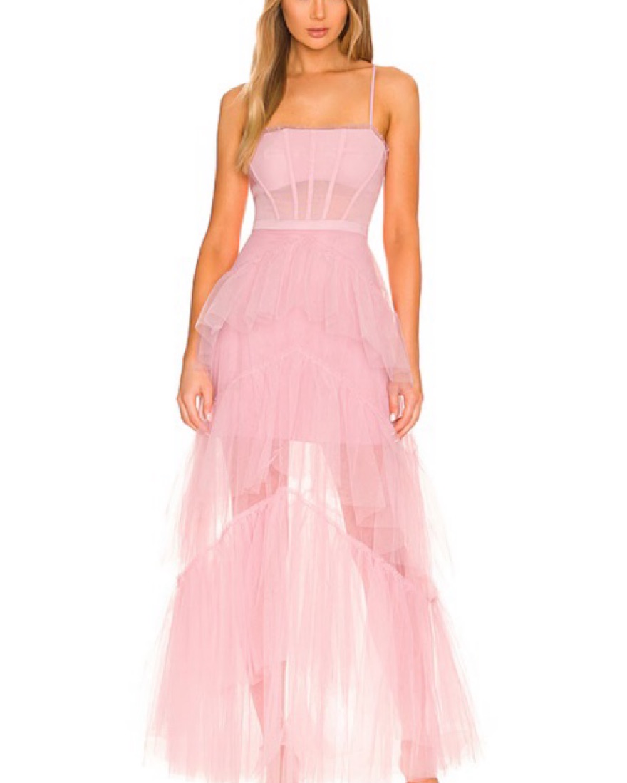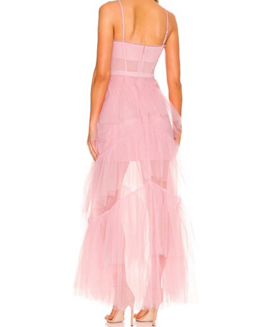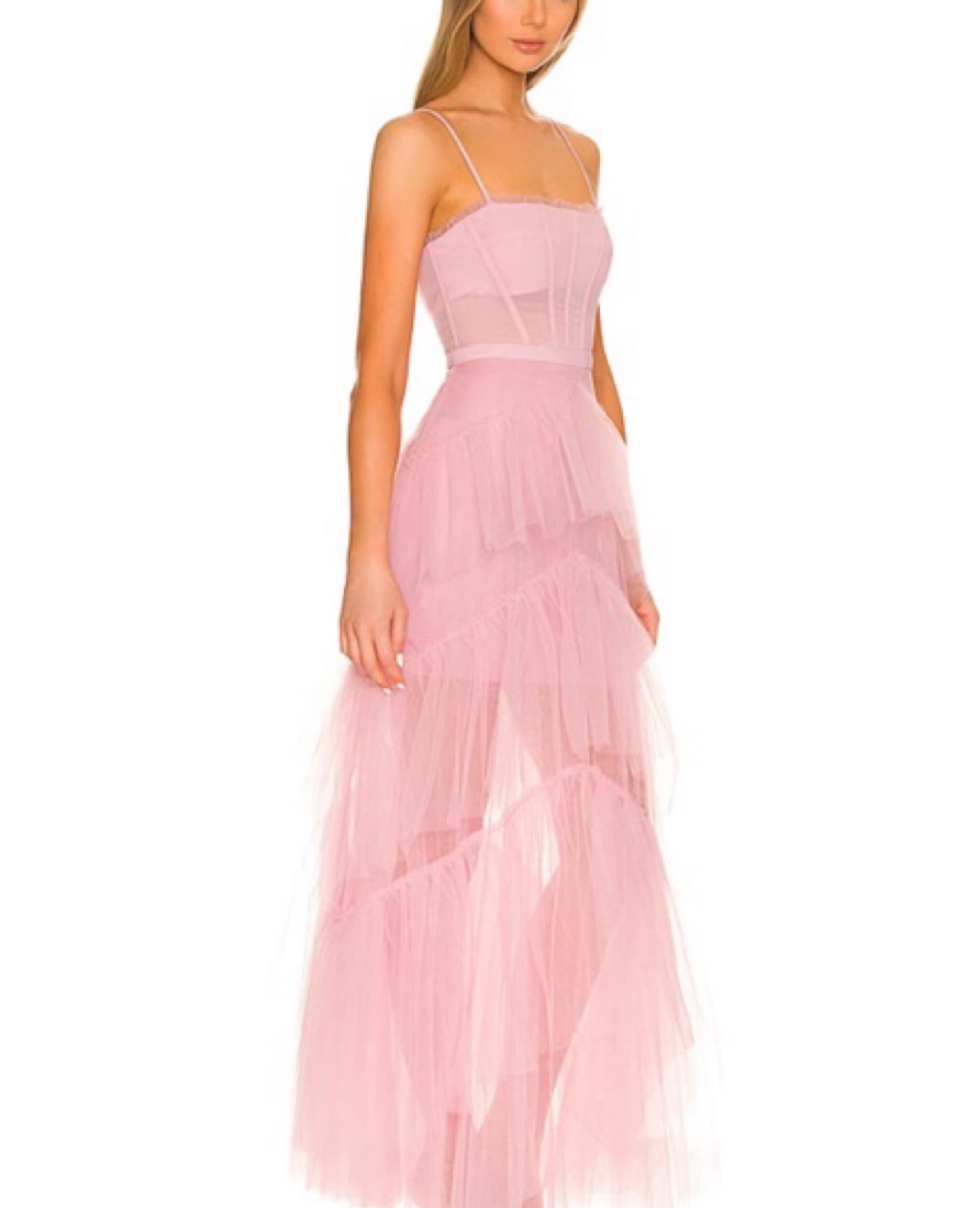 Purchased from revolve. Only worn once to a wedding. Near perfect condition BCBGMAXAZRIA corset tulle gown in light pink!
