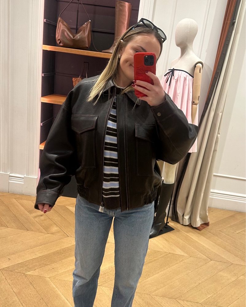 This chic leather jacket is perfect for a night out with friends or a casual weekend look. The pockets and relaxed fit make it a versatile piece you'll reach for again and again.