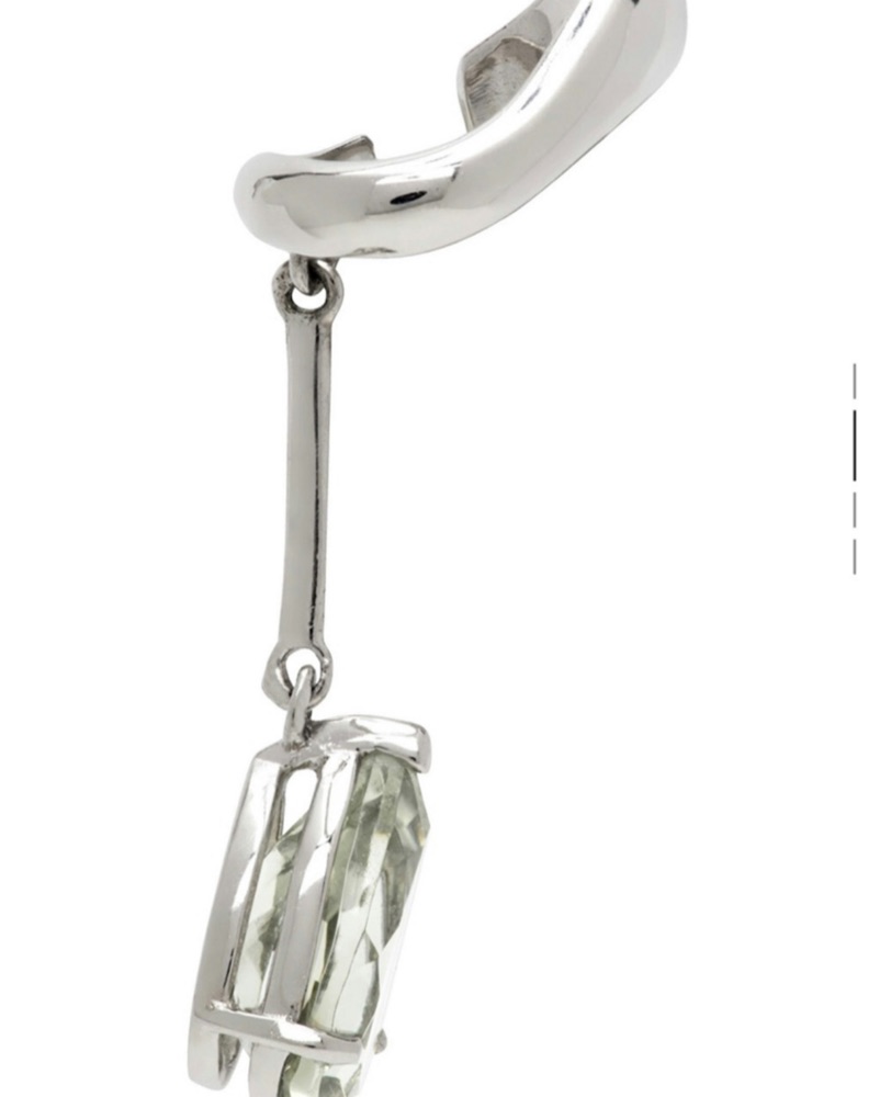 Polished silver ear cuff with a subtle green amethyst drop. Minimal with a directional edge - an understated statement that adds a refined, modern touch to any look.