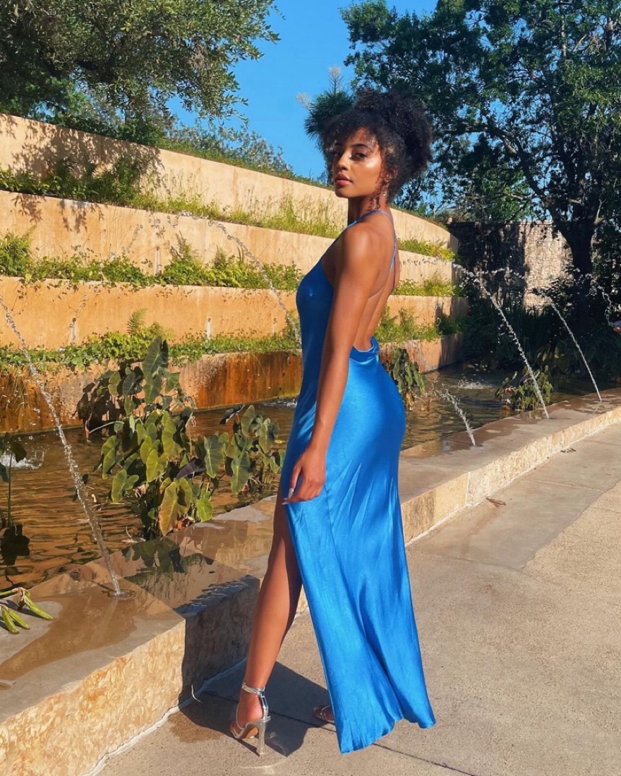 most beautiful ocean blue, size 4, high slit, low cowl back. buttery fabric, perfect for a wedding, black tie event, etc.