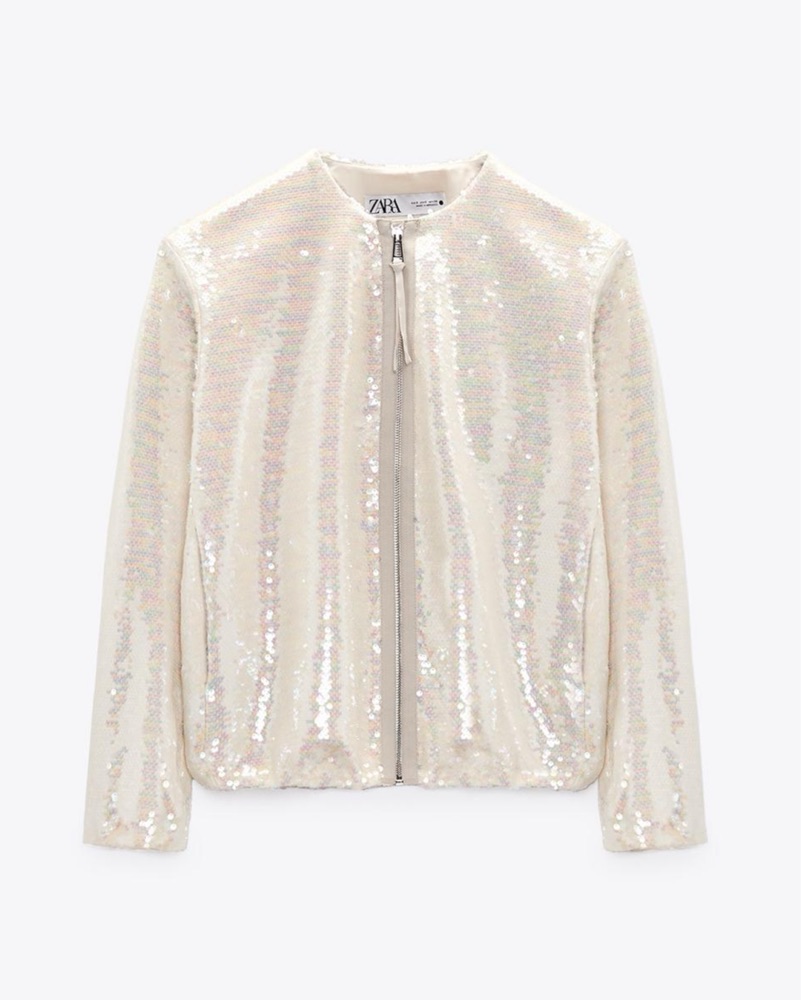 ZARA white sequin bomber jacket
