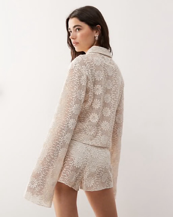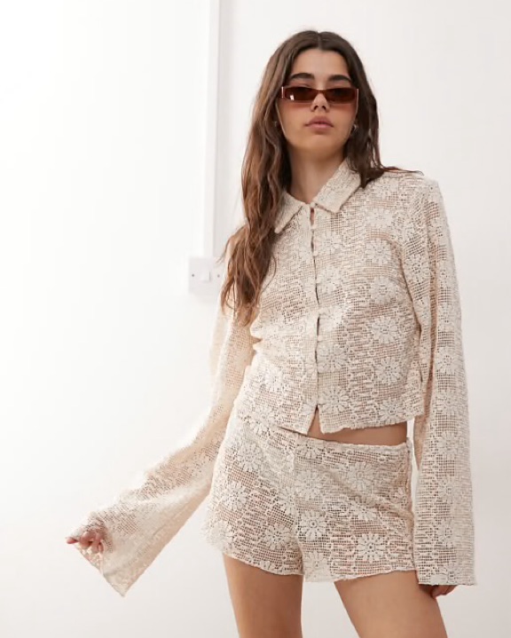 Lioness Babydoll floral crochet set in cream Small Bottoms and XS top