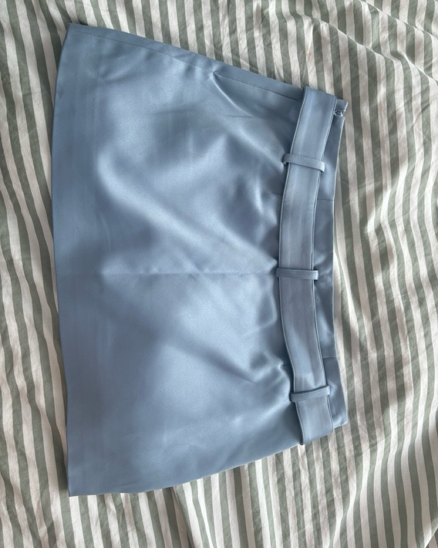 Blue mini skirr reformation satin low tise