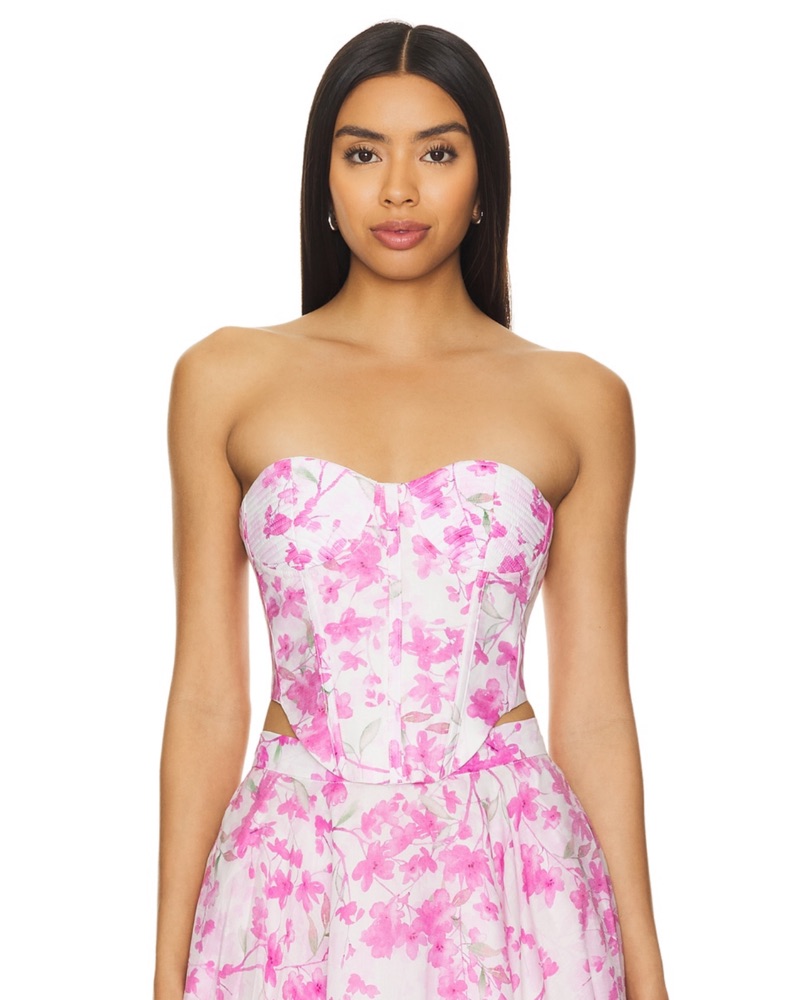 Bardot Gracious Bustier & Mirabelle Midi Skirt in Pink Floral. Top retails for $109, skirt $149