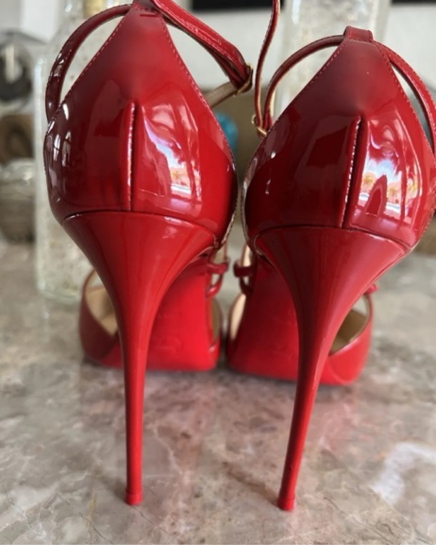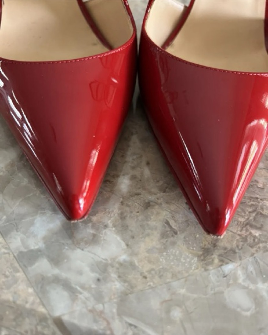 Gorgeous red bottoms pointed toe. ♥️Size 41, US 9.5 or 10. Sold out everywhere! Heel is 100mm or 4”. Please take care of them as if they were your own! They have a clear protector on the bottom soles to keep them clean. Tags: Valentine’s Day