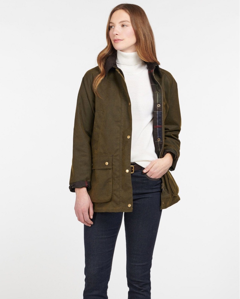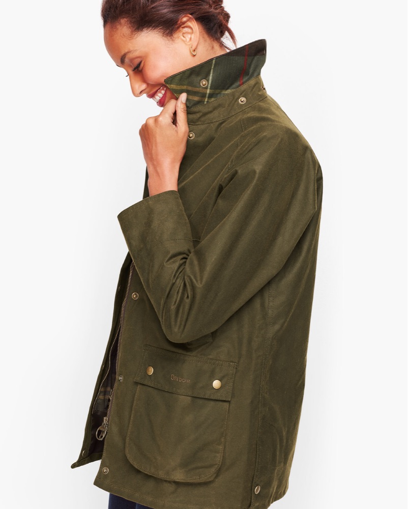 This Barbour waxed jacket is perfect for transitional weather. Pair it with jeans and boots for a casual yet chic look.