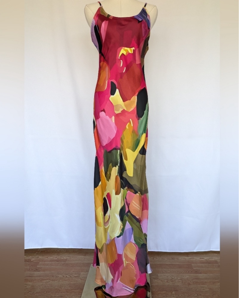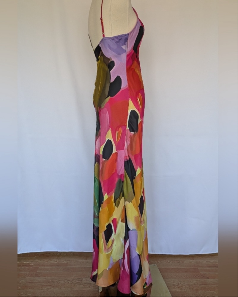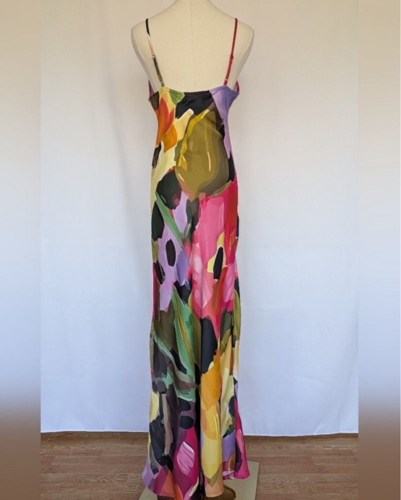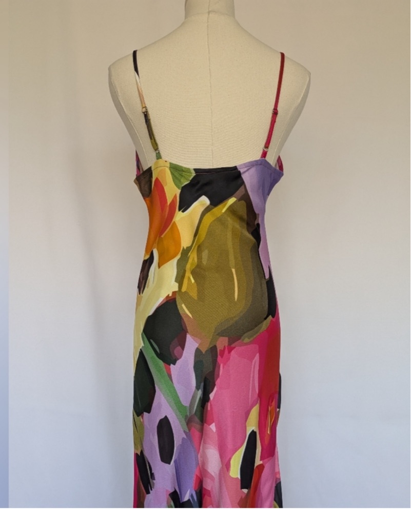 The perfect wedding guest dress! It is from conditions apply, I bought it on the real real never been worn! It is bias cut so it’s super flattering and has adjustable straps. Perfect dress to attend a spring wedding!!
