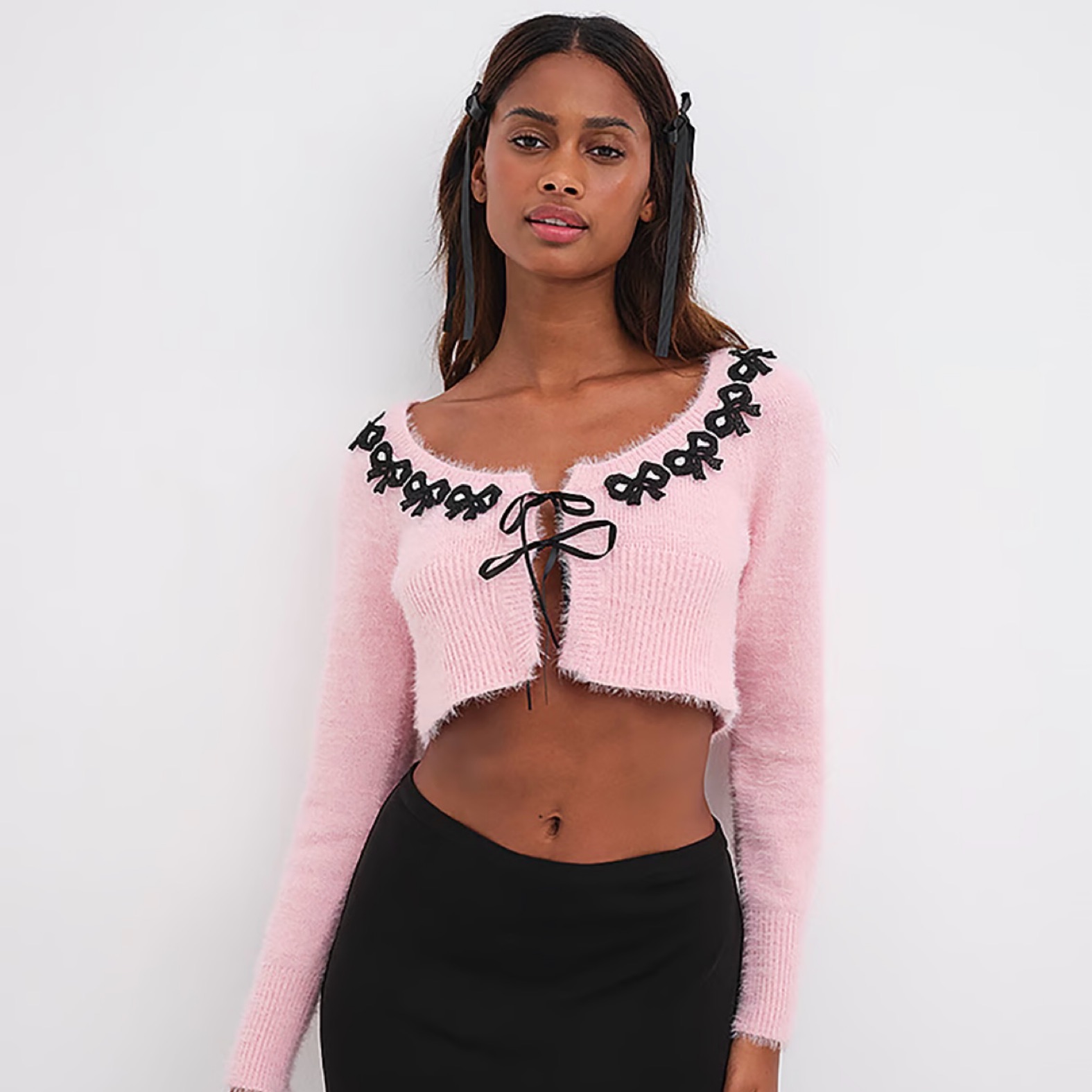 baby pink bow caridgan perfect for all seasons - fuzzy / soft material so do need to be gentle!