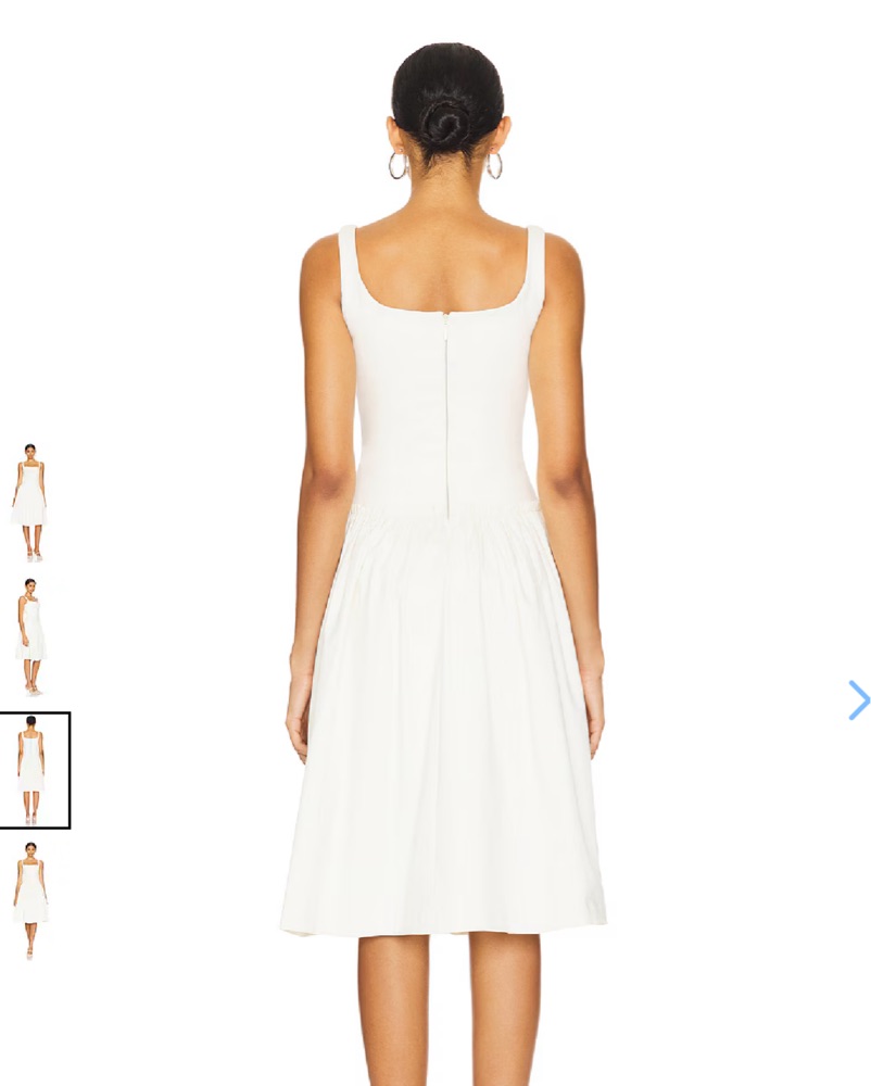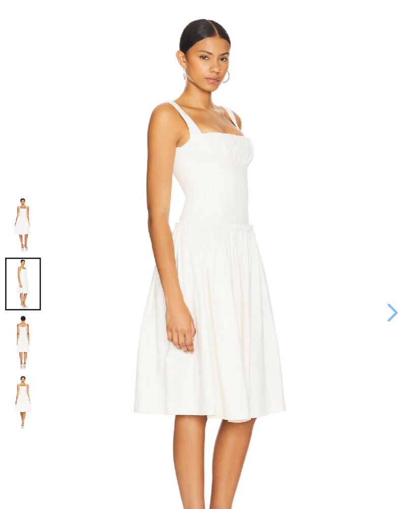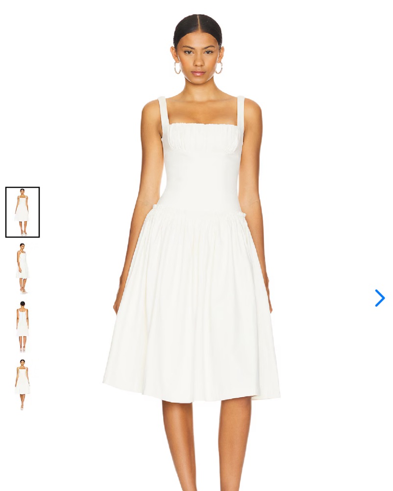 Revolve LOBA Lalia Midi Dress in Ivory - Size XS. Drop waist white / ivory dress. Midi length (for reference I am 5’ and the model is 5’10”) Square neck line. Worn once for engagement photos. Perfect for brides / wedding events and graduations.