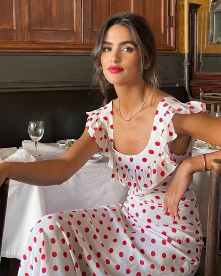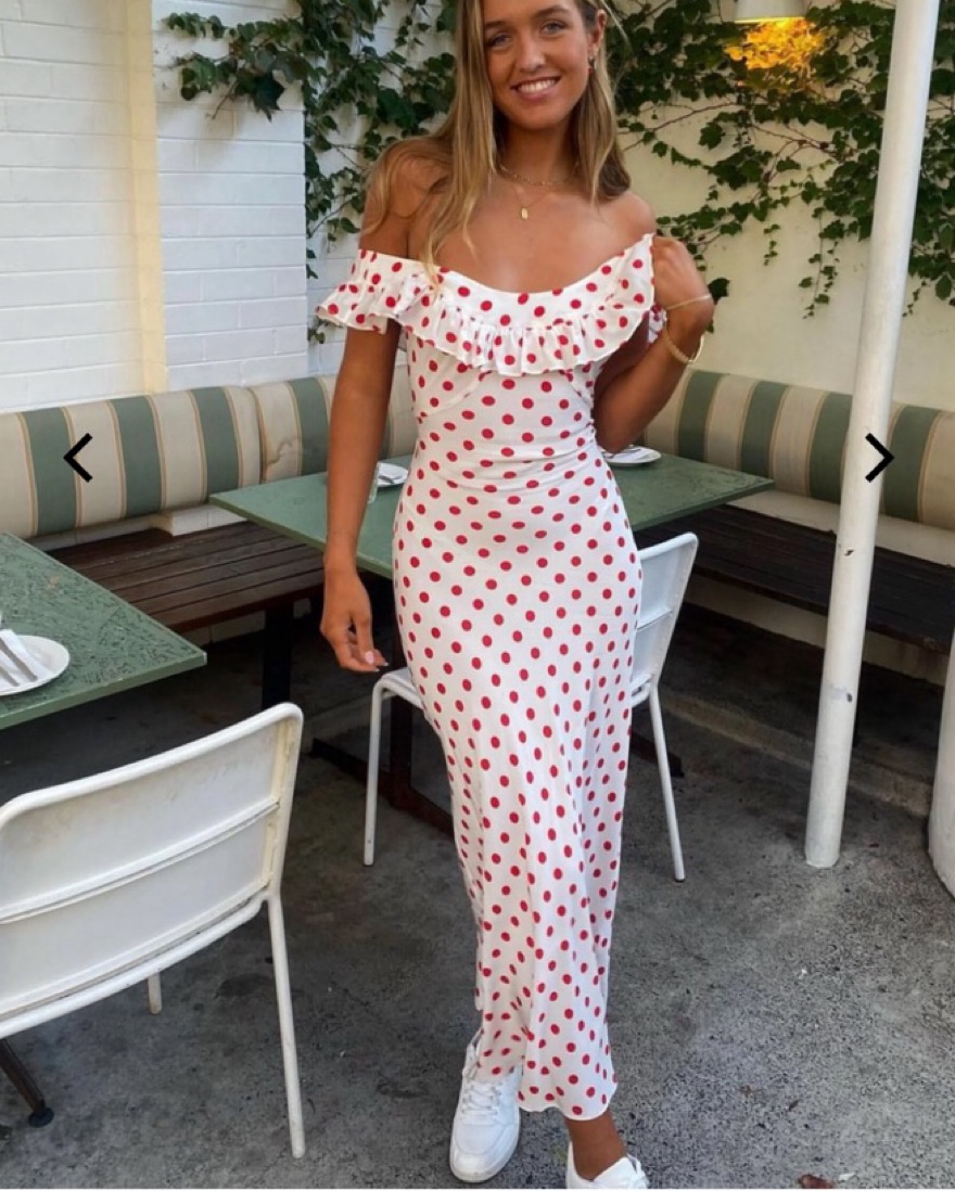 Show stopper, fun polka-dot dress from the Claudia Schiffer collab. Super rare, sold out, perfect for wine tasting in Napa, a fun date or your birthday party. Excellent condition 100% silk, Super Dot print. Relaxed fit w/ ruffle neckline, adjustable back tie, slip on, true to size.