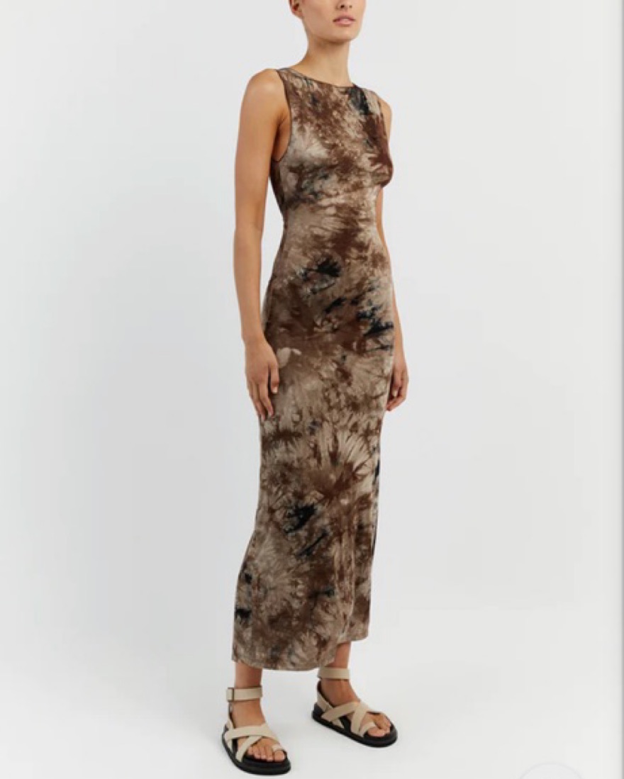 Dissh Sawyer Taupe Tie Dye Midi Dress