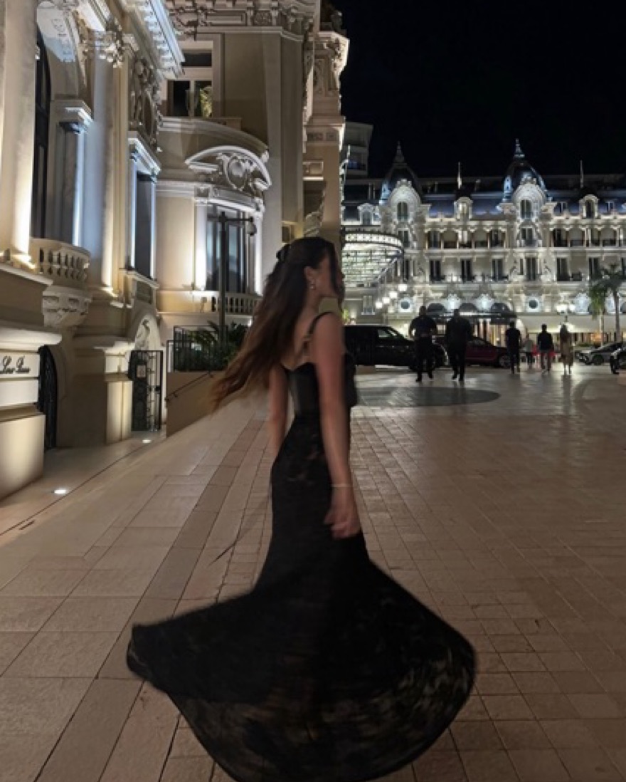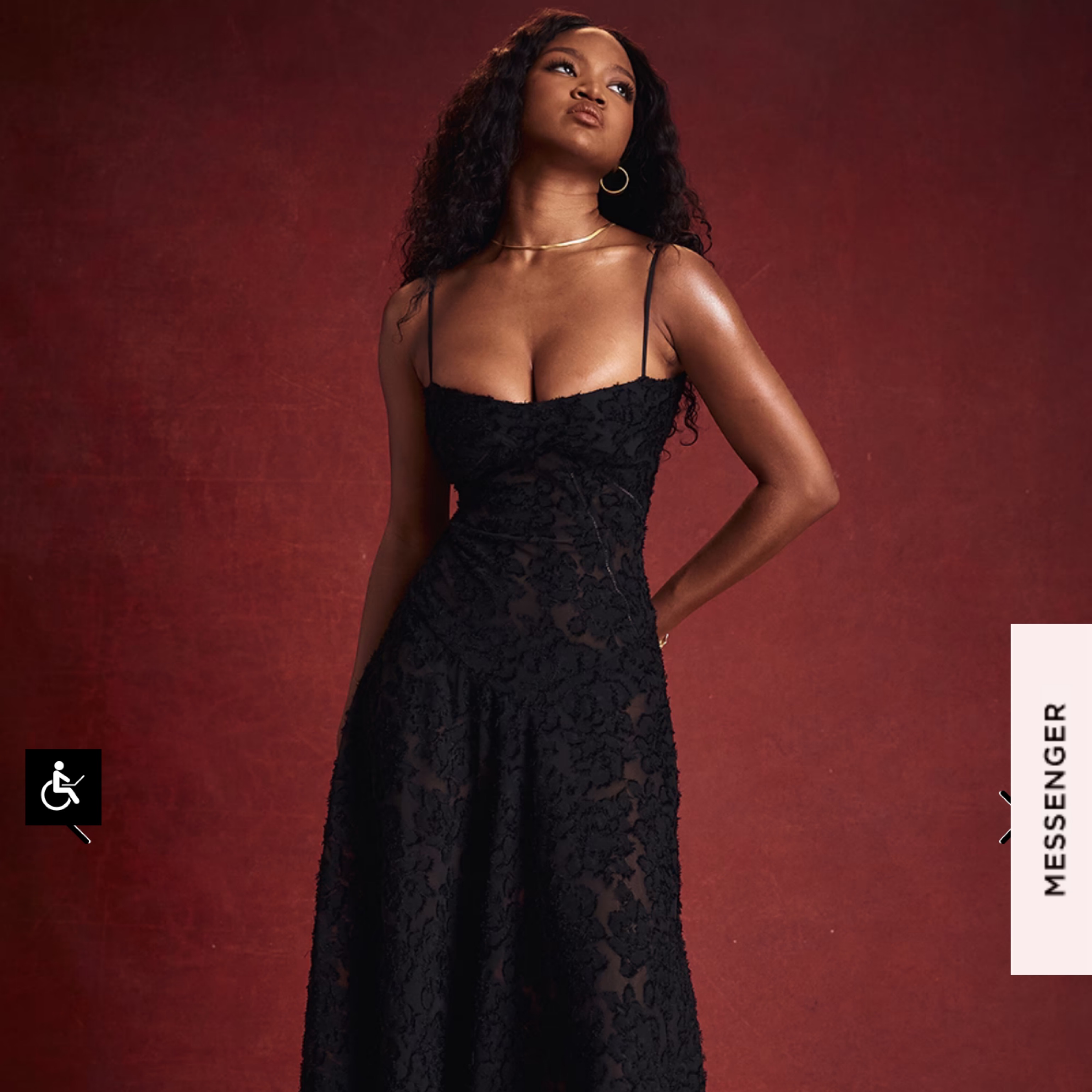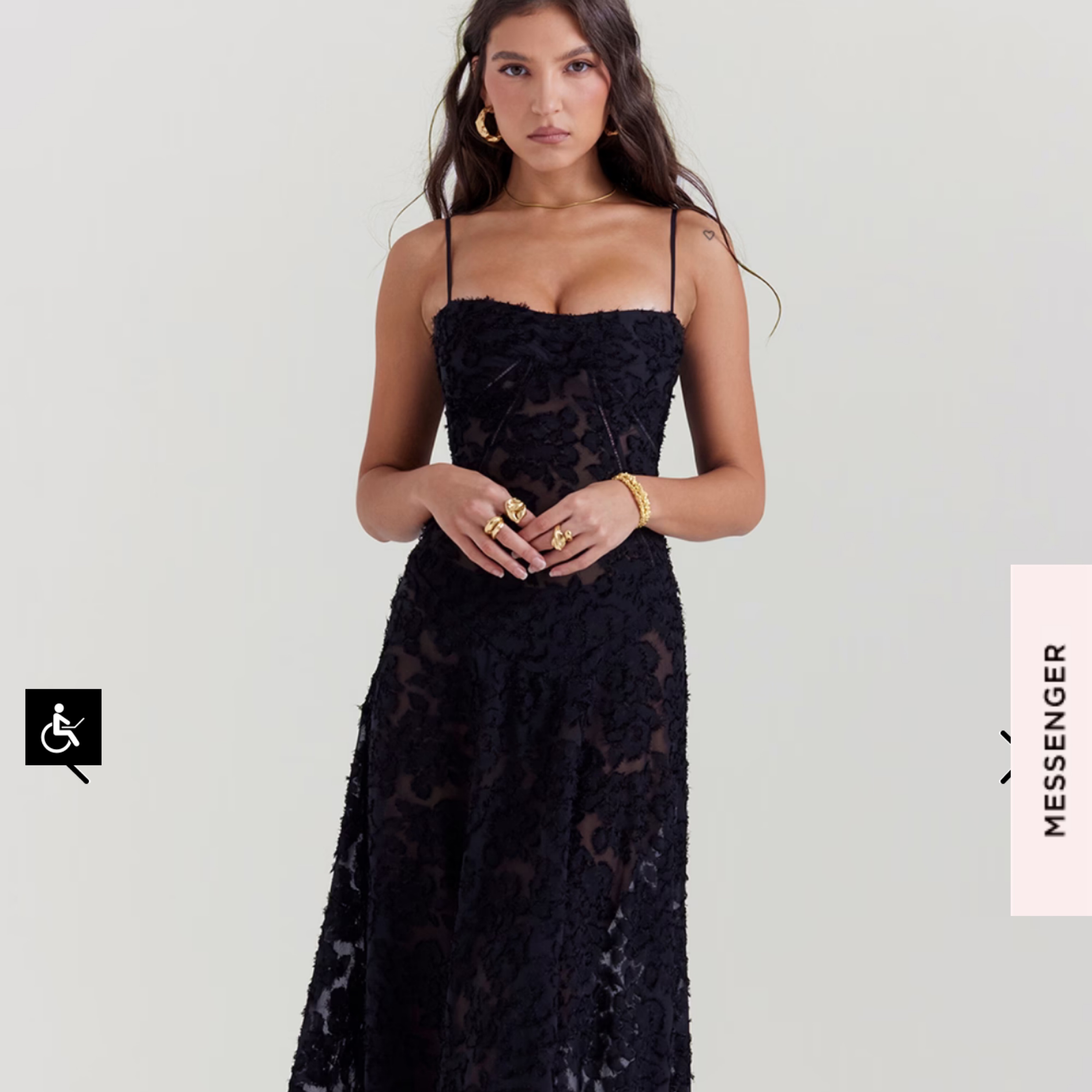 Textured Jacquard with floral blossoms.Slightly seethrough, sexy but elegant with a flattering shaped bust with delicate rouleau shoulder straps. The bodice has a curved hem that sits below the natural waistline and the skirt skims over the hip falling freely to a floaty finish. Floor lenght. True M