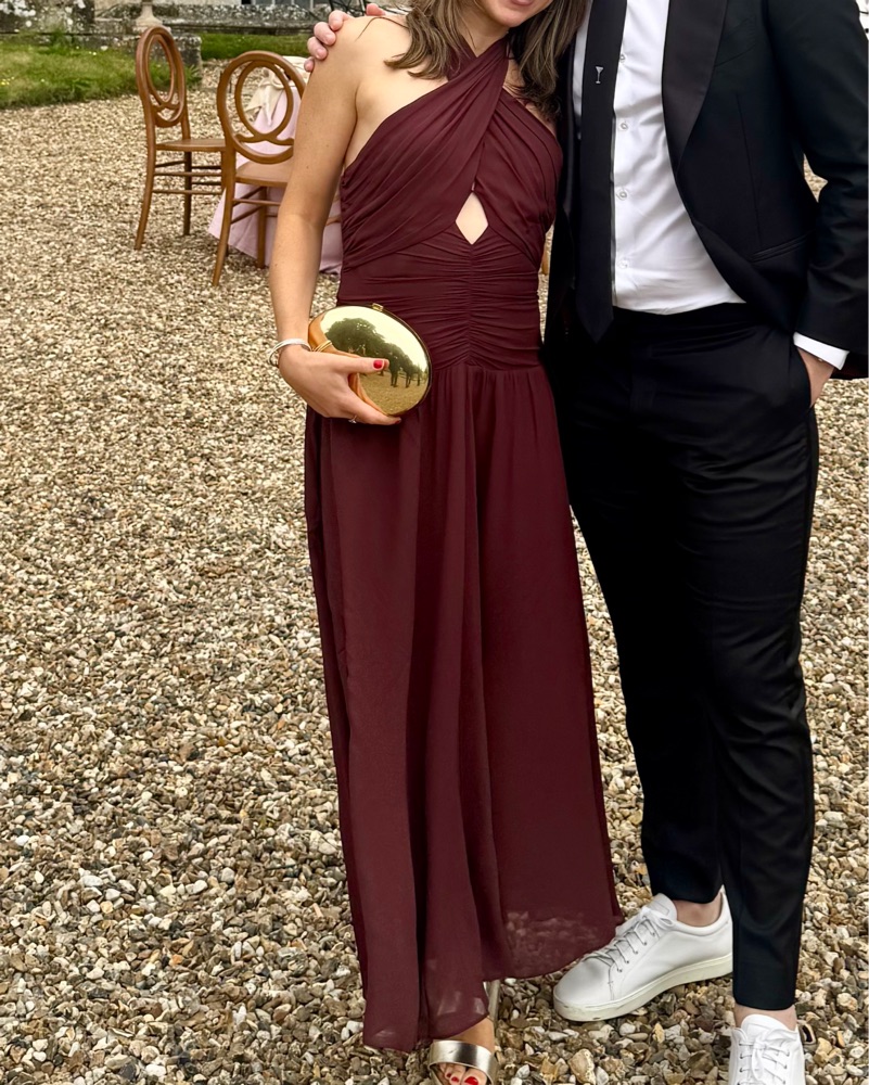 Burgundy gown perfect for a wedding. Never been worn before. :)