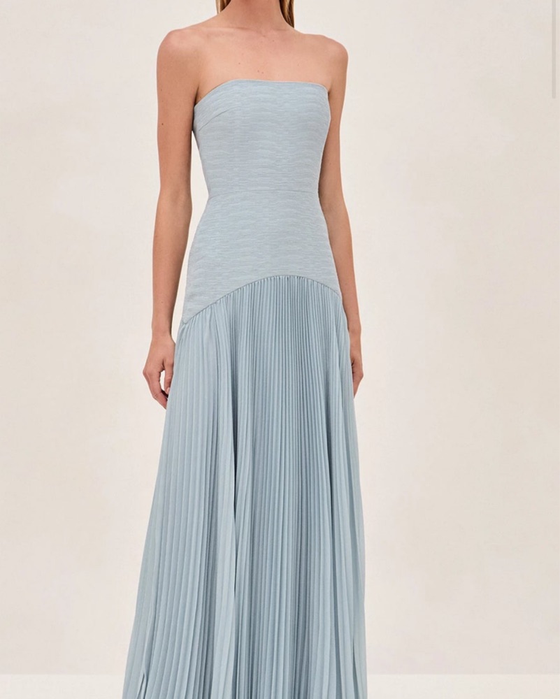 This stunning pleated maxi dress is perfect for formal events or special occasions. Hemmed to fit 5’7”- usually wear a size 2/4. Please return dry cleaned.