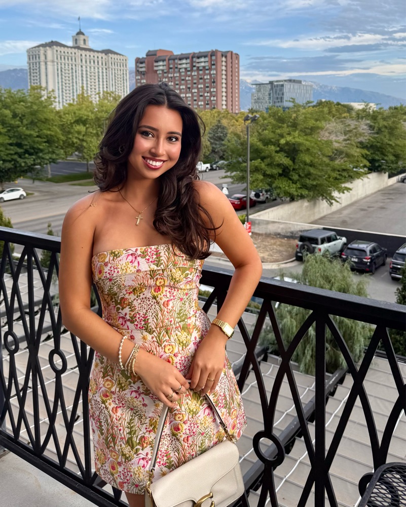 This strapless dress is perfect for a summer garden party or evening cocktail event. The vibrant floral print and flattering silhouette make it a stylish choice.