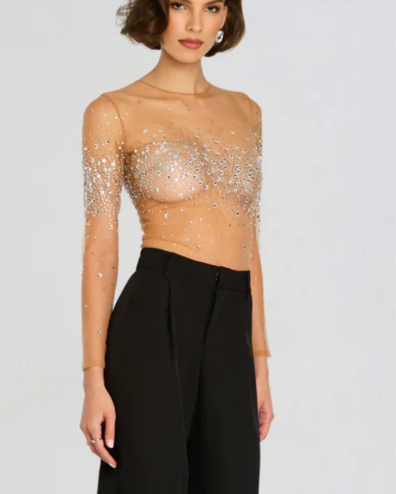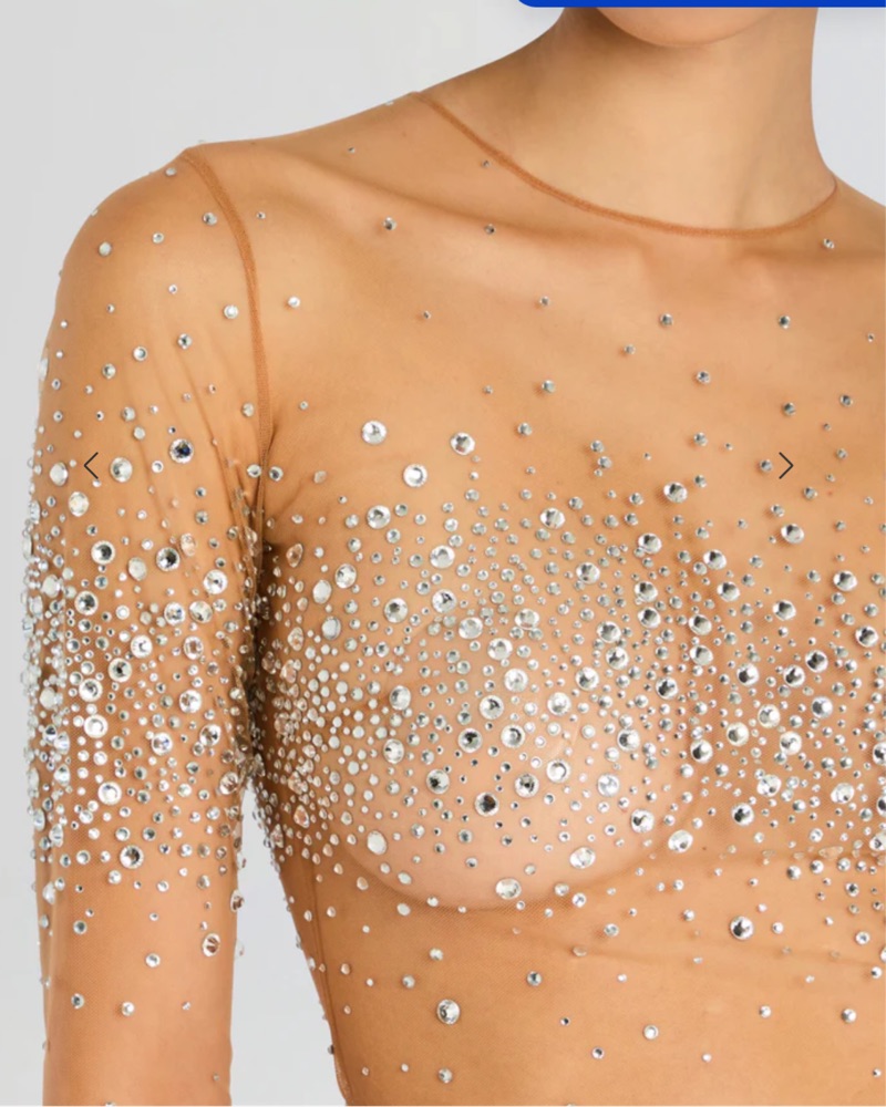 Stunning sheer crystal top by Retrofete. Adorned with Swarovski crystals. Brand new.