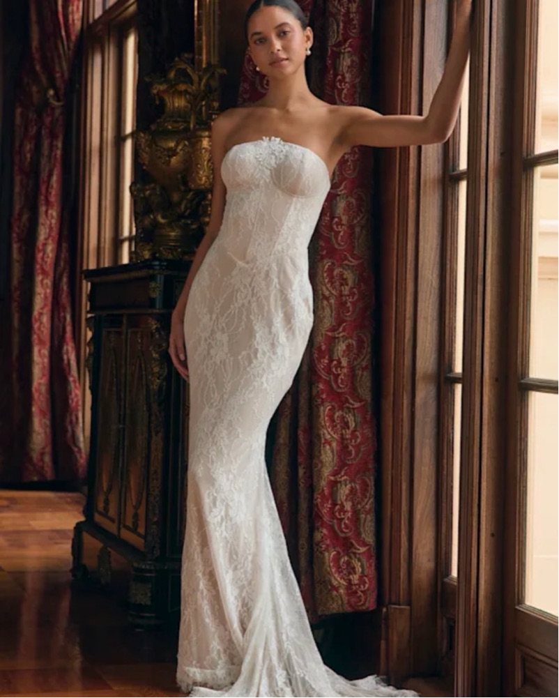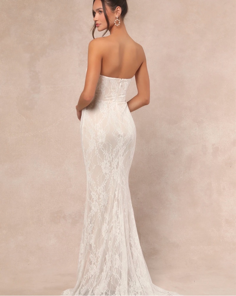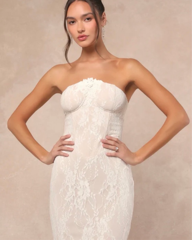 Valeria White Lace Strapless Bustier Max by Lulus - Pickle
