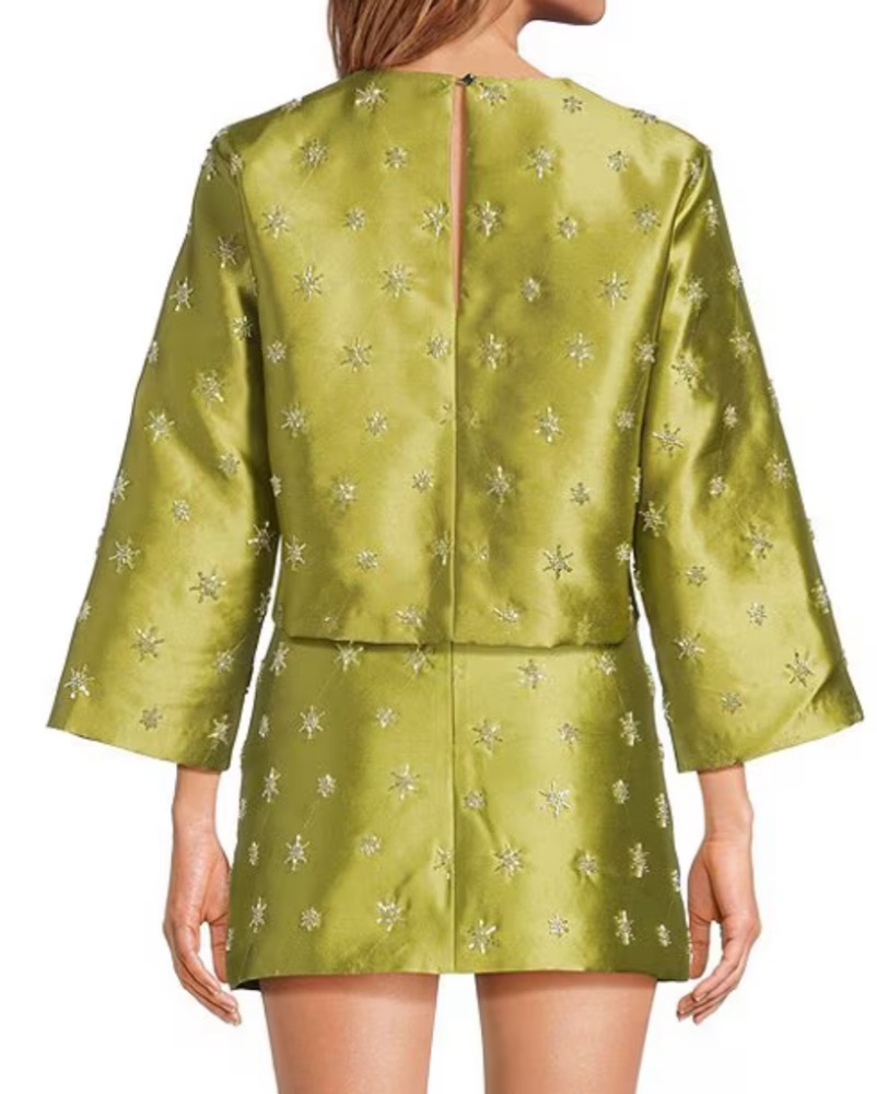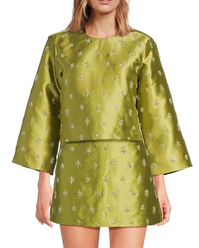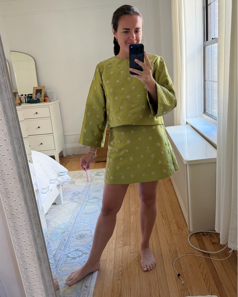 Chelsea and violet via Dillards matching skirt and top set. Set is embroidered and embellished with a beading design. Really cute for a holiday party, engagement party, rehearsal dinner, etc. sizing is generous and would fit a size or two up or down. Skirt is a 10 and top is a M.