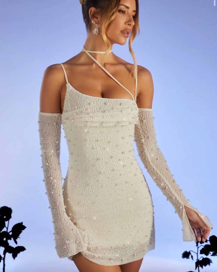 SOHO Embellished Asymmetric Corset Mini Dress in Ivory
