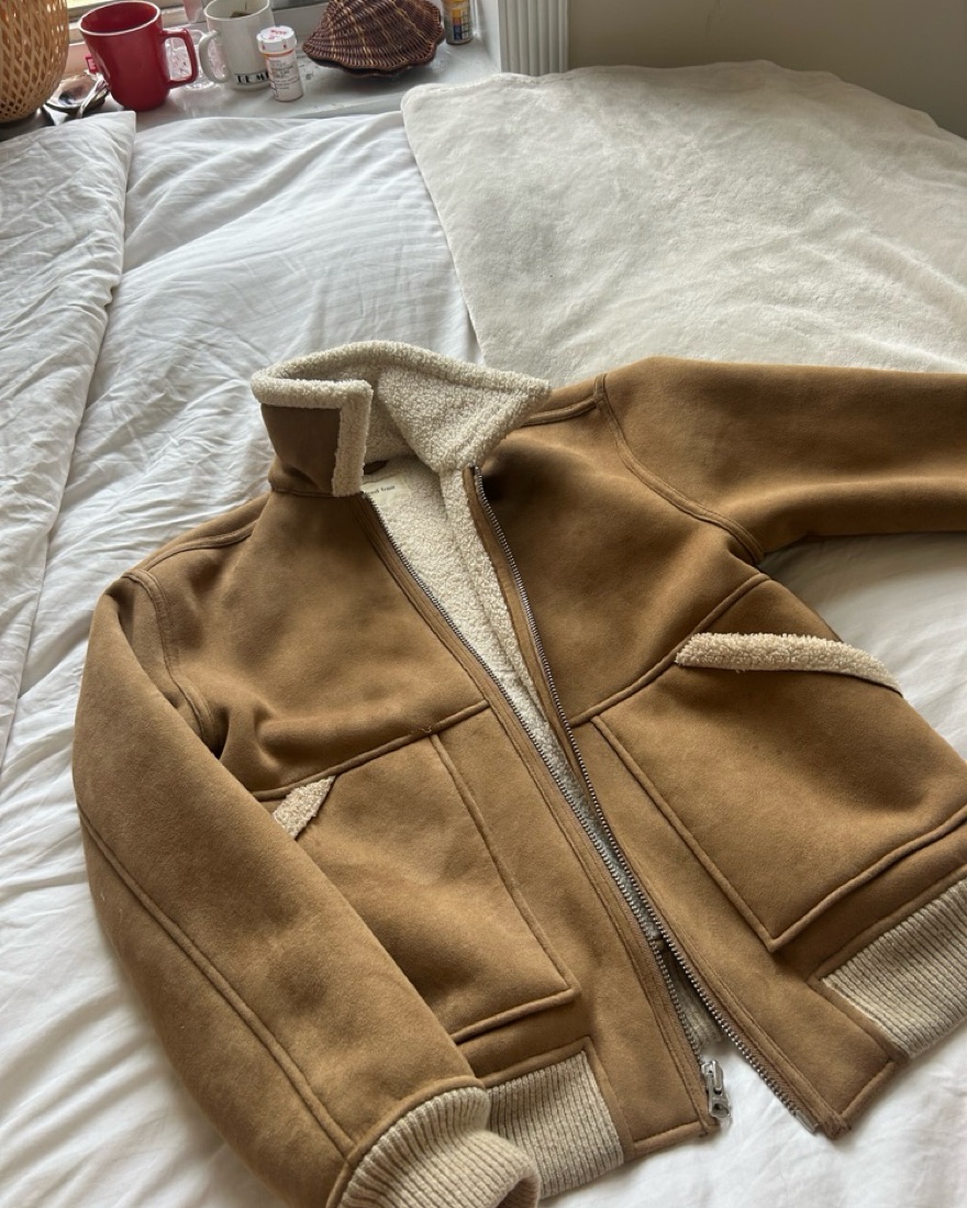 Aritzia Wilfred Free Bomber Jacket; tan with Sherpa lining
