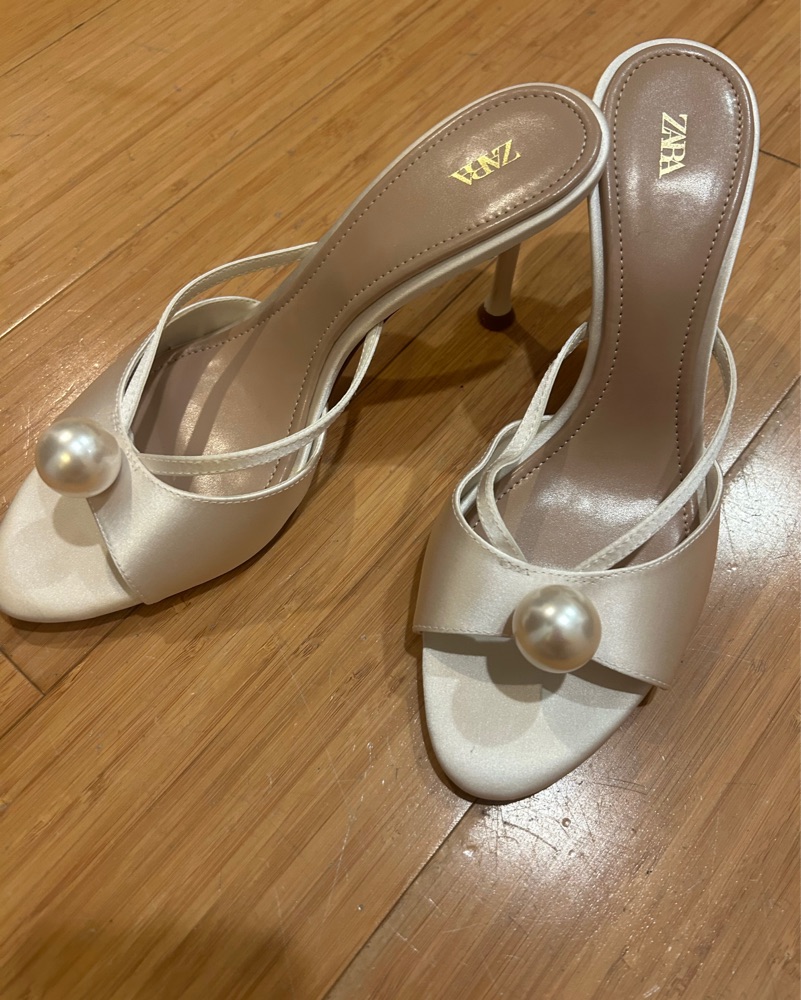 Bridal shoes with pearl detail from Zara. Size 8.5 cream color